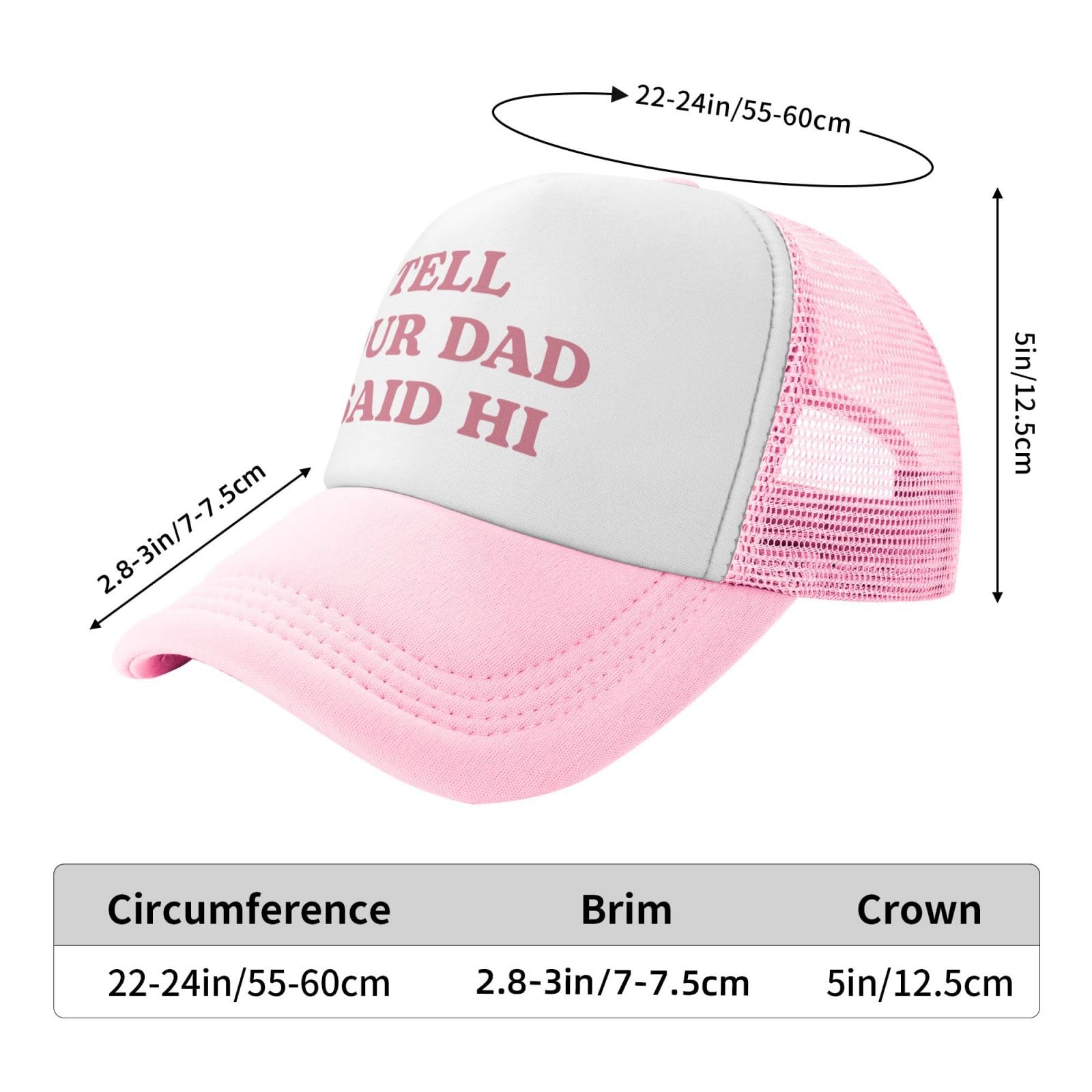 Unhinged Trucker Hat Funny Women Tell Your Dad I Said Hi Hat. As Light As A Feather. With 6 Air Holes. Breathable. Comfortably All Day. Low Profile. Our Baseball Hat Allow You Iron On Your Personality Patch,Adjustable Size - One Size Fits Most. Adjustable Metal Closure Provides A Flexible Fit.Rear Opening Design Fits Women'S Low Ponytail Comfortably. ,Fits For Men And Teenagers.Sun Protection And Occasion - Protects The Skin From Harmful Ultraviolet Rays,Great For Running. Hiking. Biking.