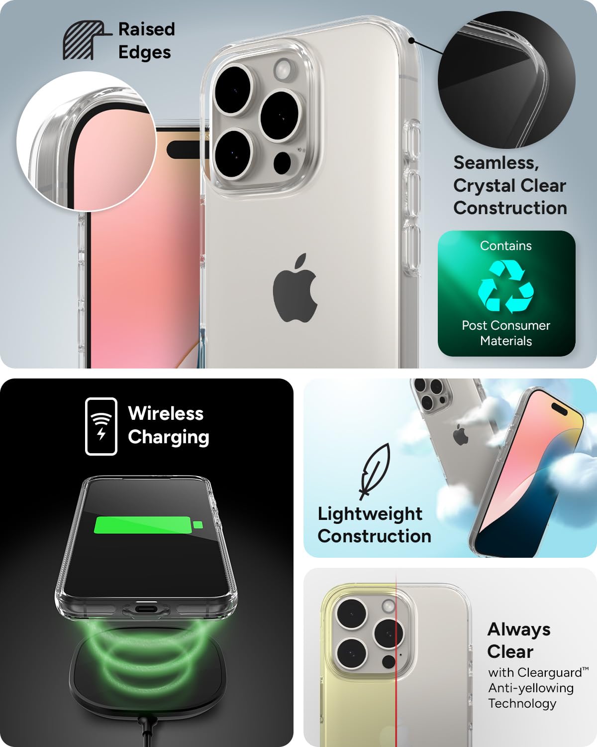 STAYS BEAUTIFUL, STAYS CLEAR: Keep your case looking crystal clear over time with three advanced anti-yellowing technologies and an anti-scratch finish, ensuring your iPhone’s sleek design shines through