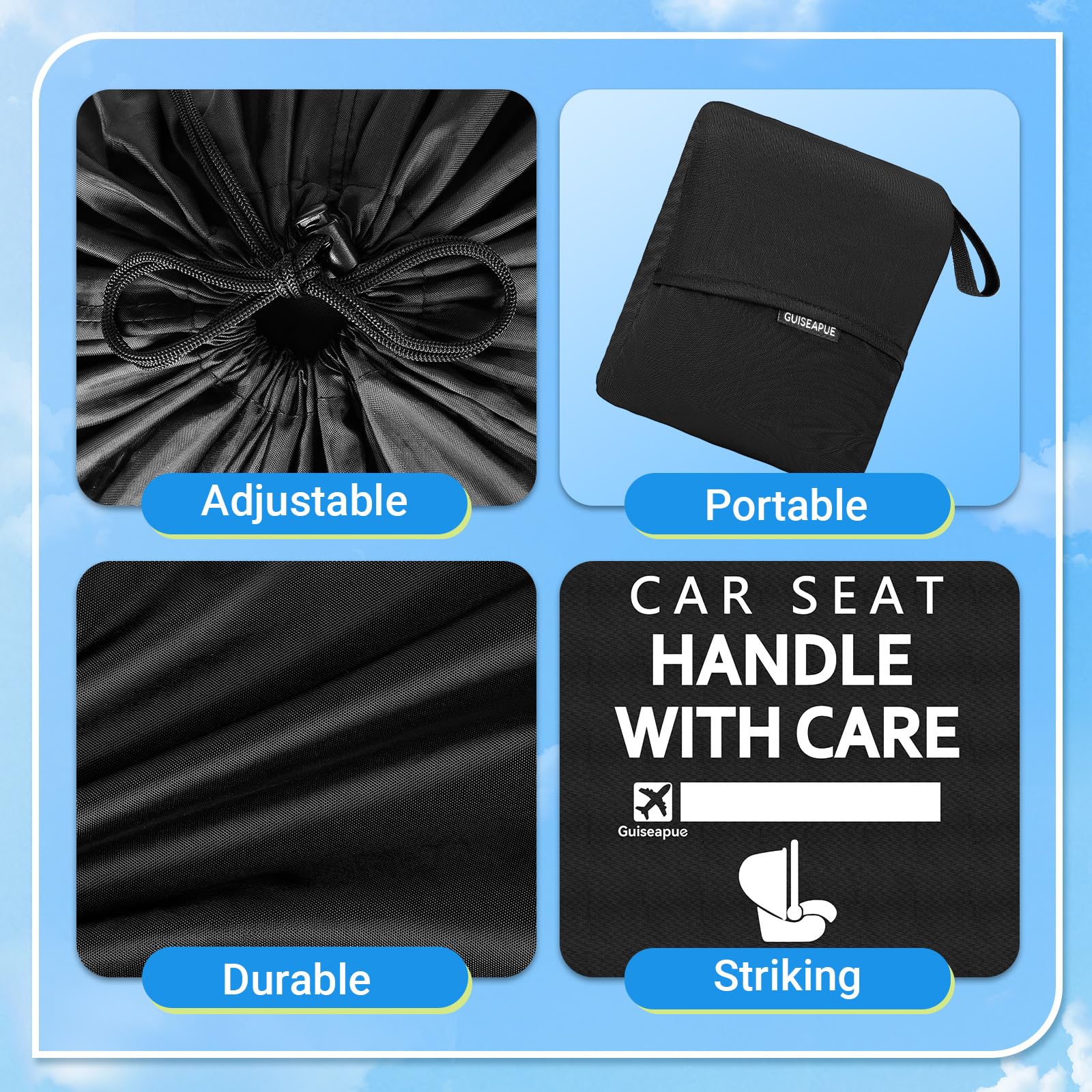 Durability and Protection: Our carseat travel bag for airplane made from highly durable nylon material, protects infant carriers, convertible car seats and booster seats from dirt, scuffs, grease & moisture. It ensures your car seats stays safe and clean during your travels.