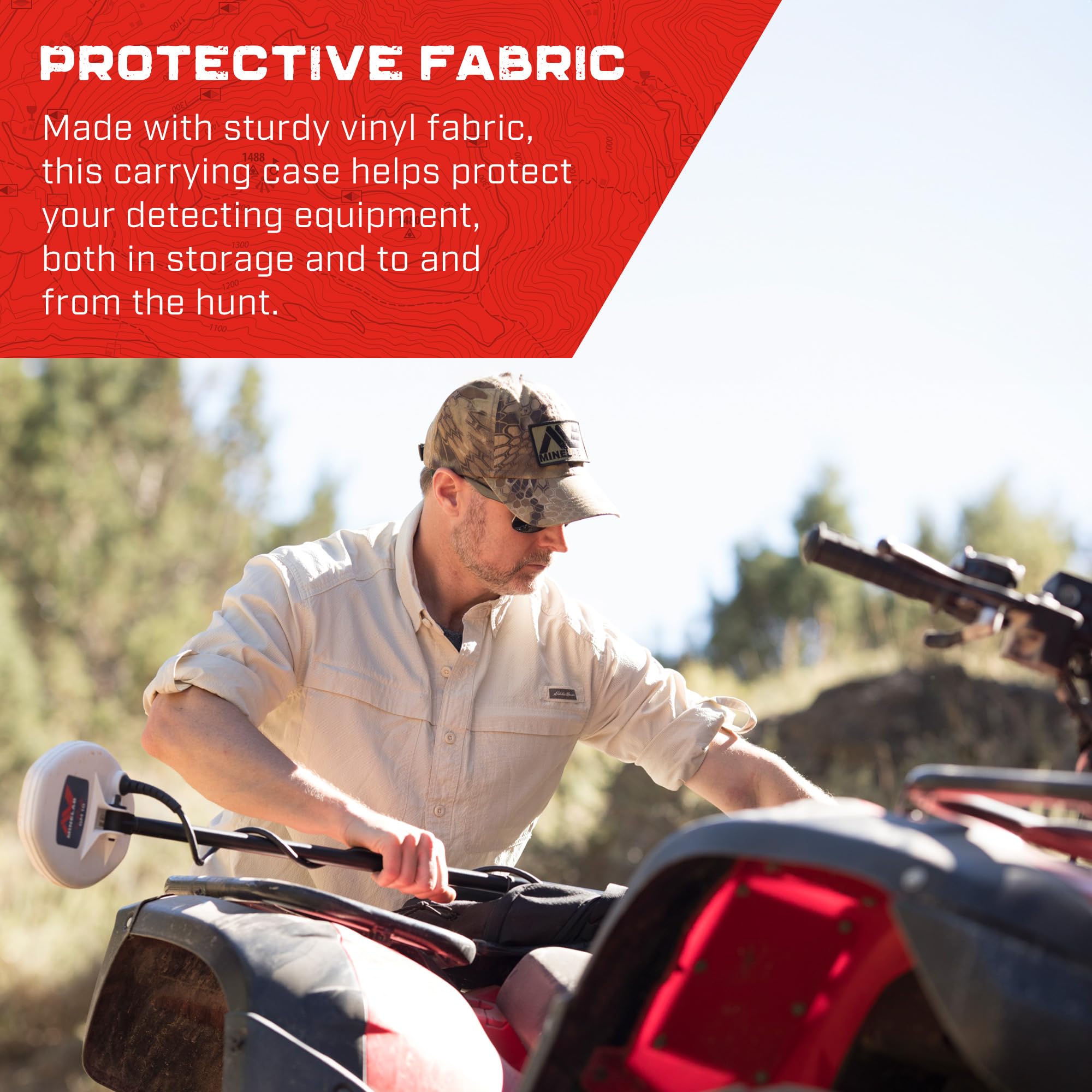 PROTECTIVE FABRIC. Made with sturdy vinyl fabric, this carrying case for metal detectors helps protect your detecting equipment, both in storage and to and from the hunt.