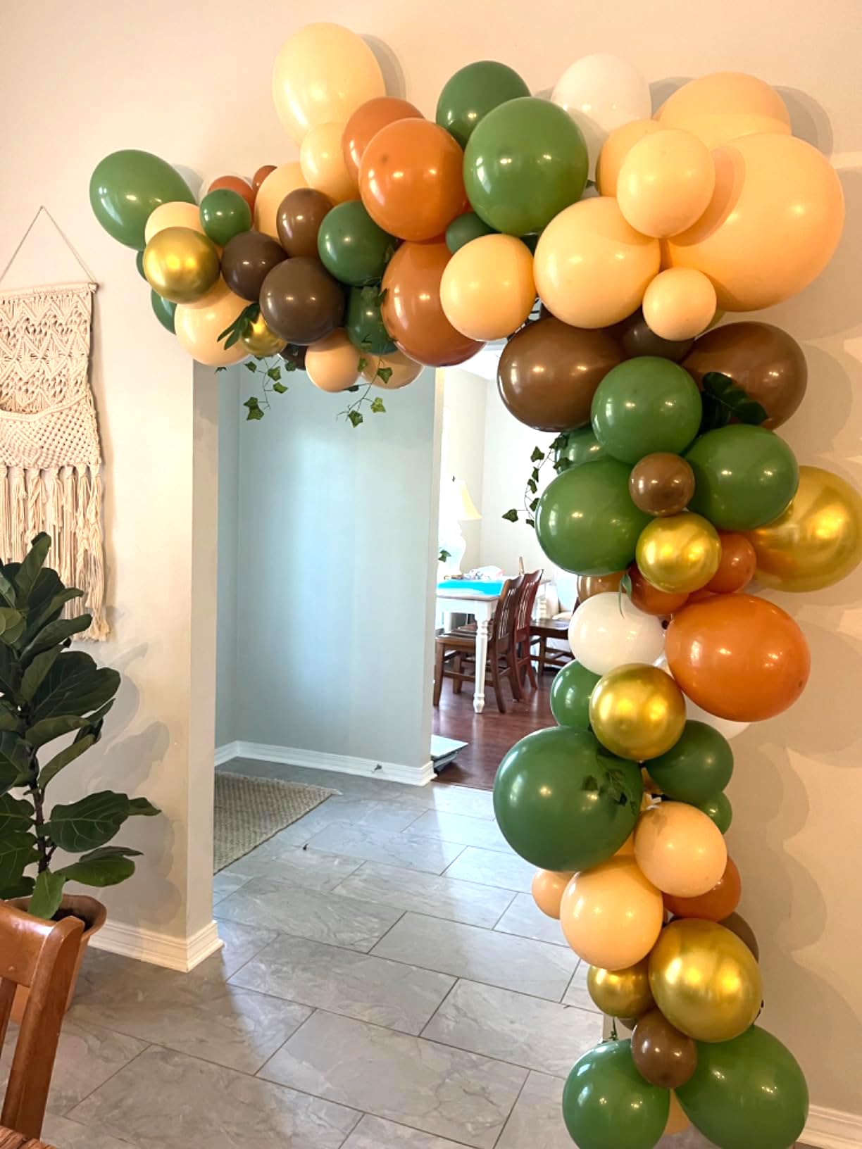 【Warm Tips】: After the green brown balloons are inflated, the color effect will become lighter, and the color of the balloons may vary under different lights. Please do not fill them too full when using them in the sunlight to avoid bursting. If you have any questions, please let us know and we will do our best to solve them for you.