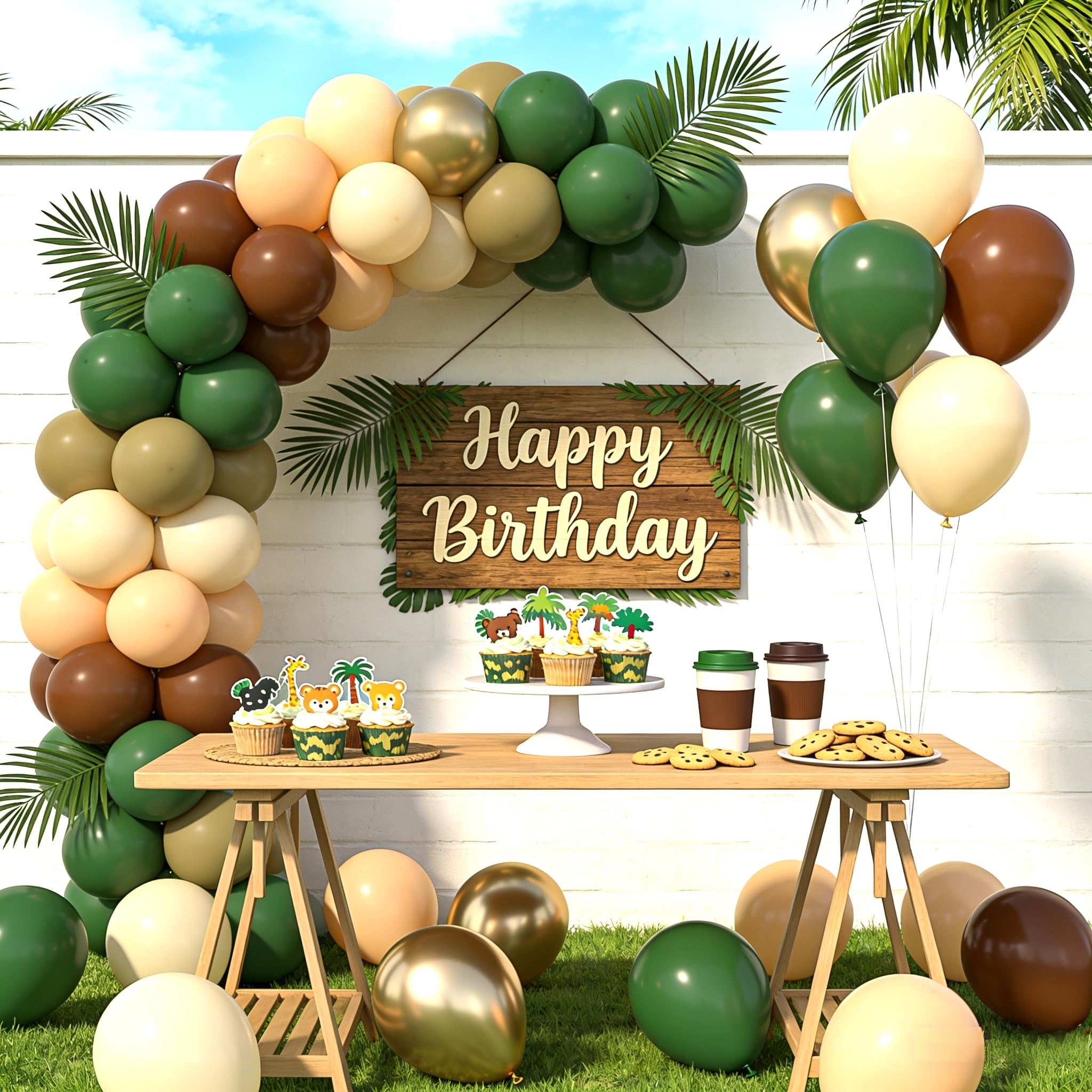 【Green Brown Cream Balloon Kit】: Our woodland party balloons can add atmosphere to your party. green brown gold balloon is the perfect decoration for happy occasions or celebratory moments such as green themed parties, woodland decorations, forest party decorations, birthday parties, suitable for both indoor and outdoor events.