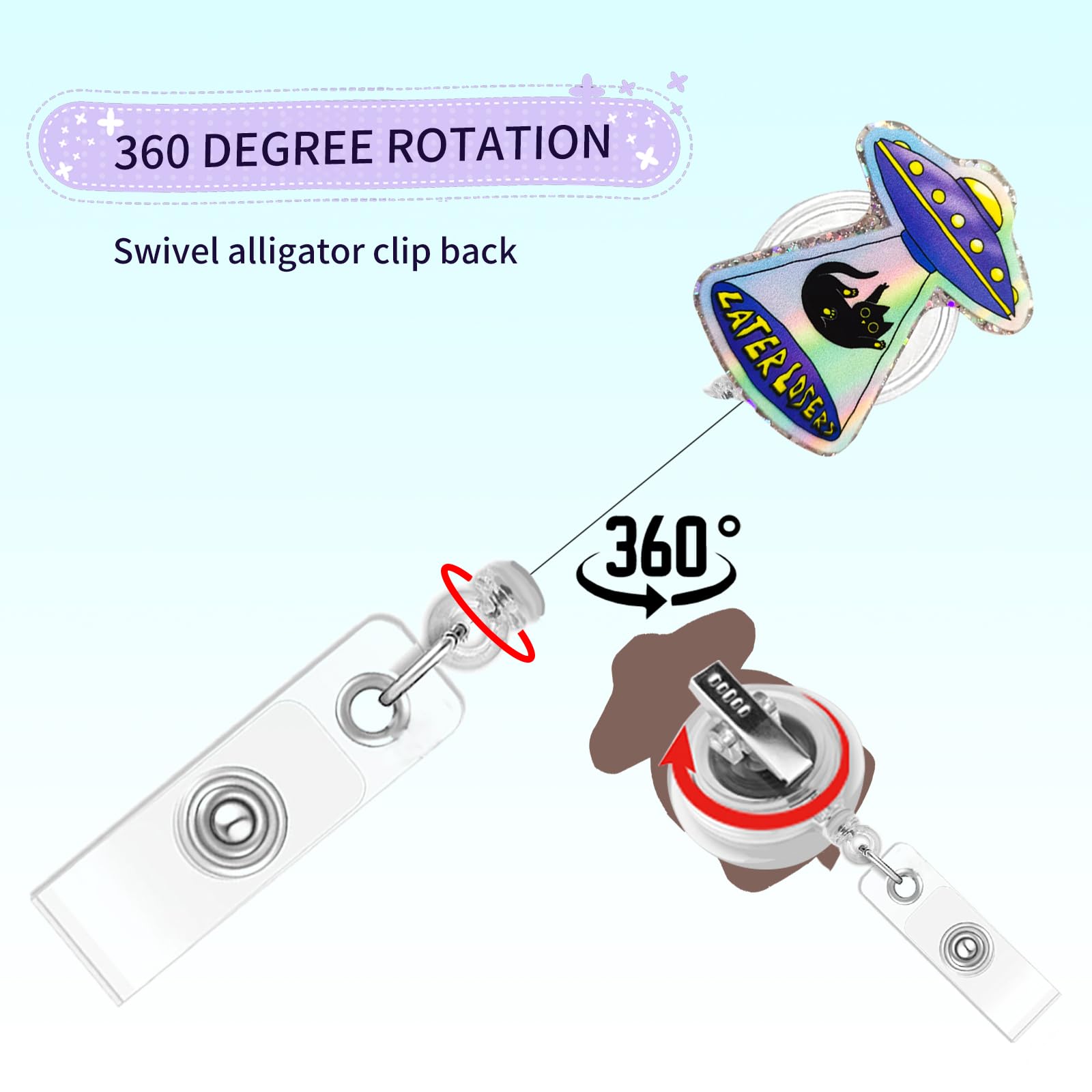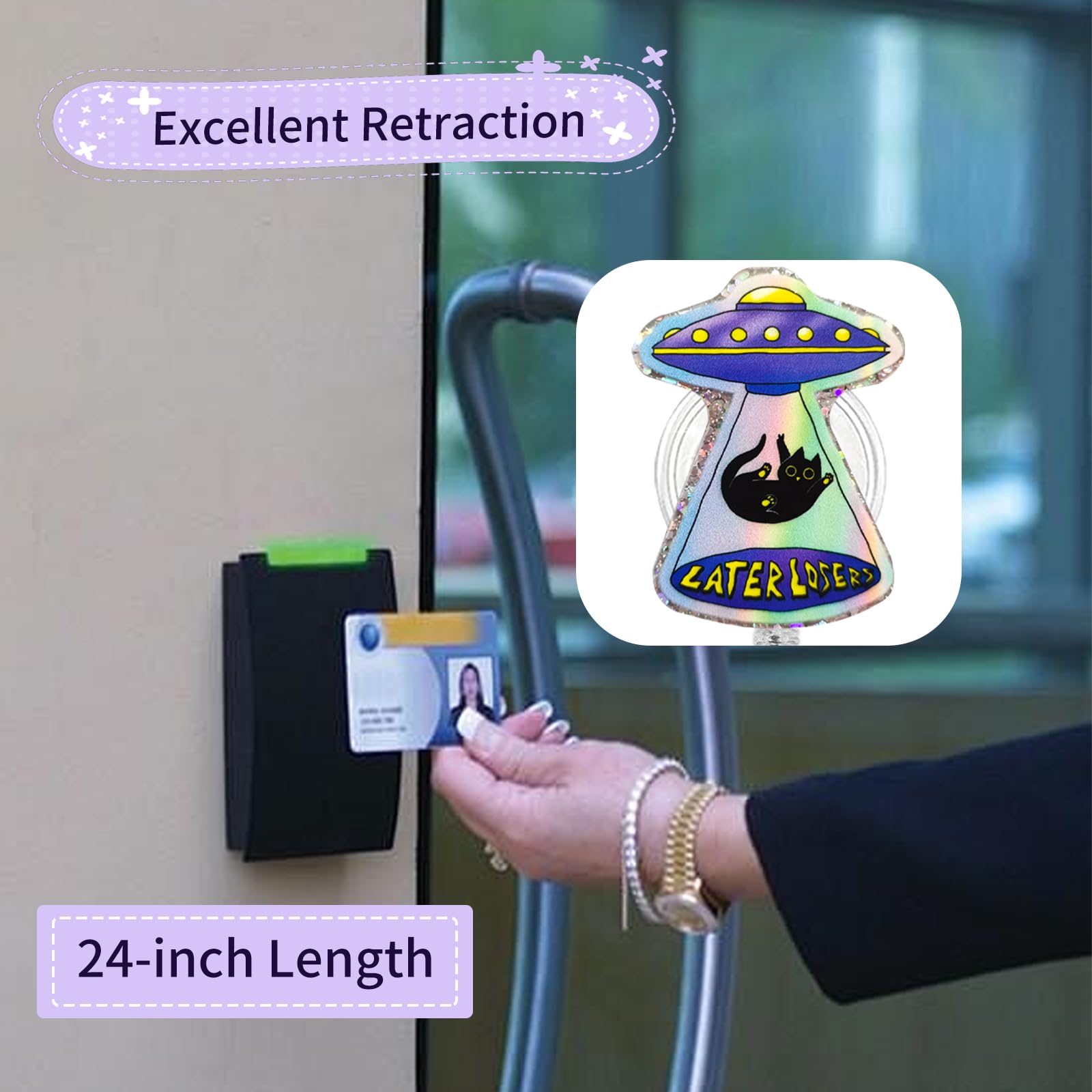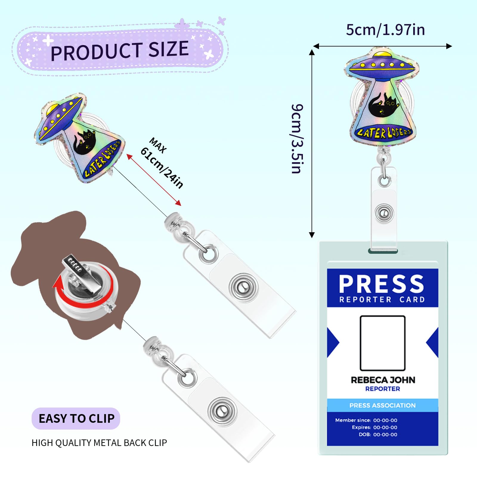 【Material】Cute UFO Cat retractable badge reel is made of high-quality acrylic, and the rope is mainly made of high-quality nylon material, which is strong and durable. They are lightweight and feature serrated alligator clips that will never drop your ID.