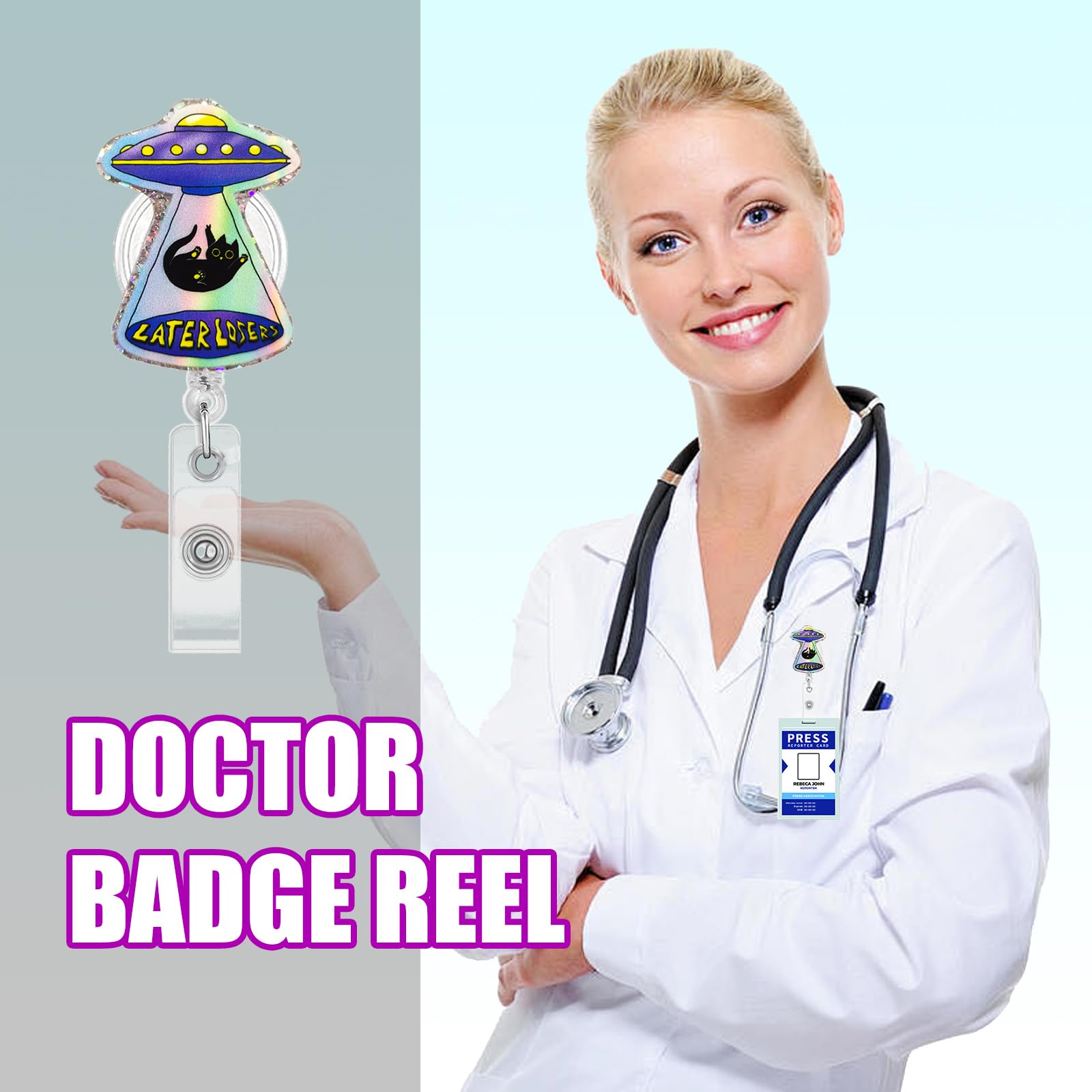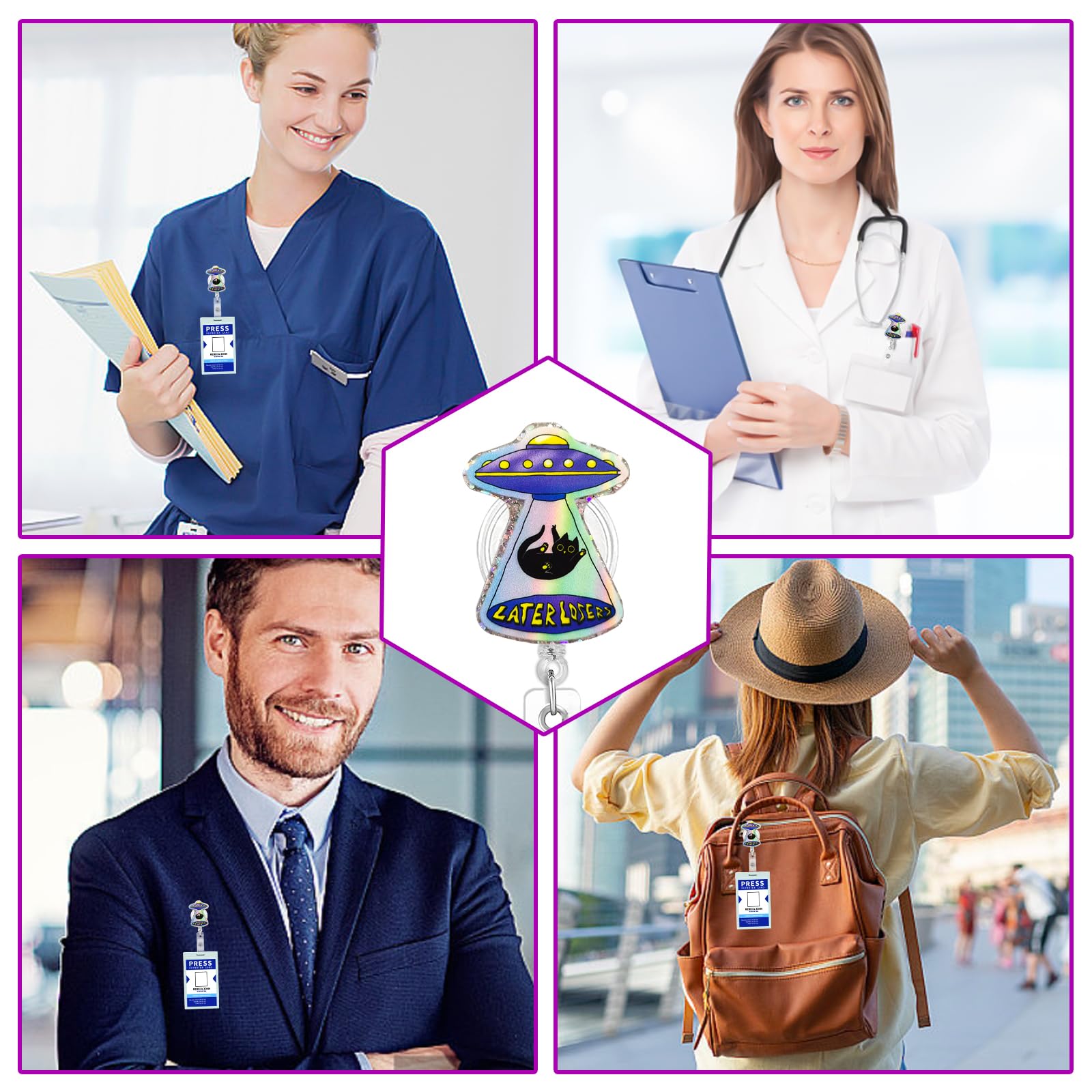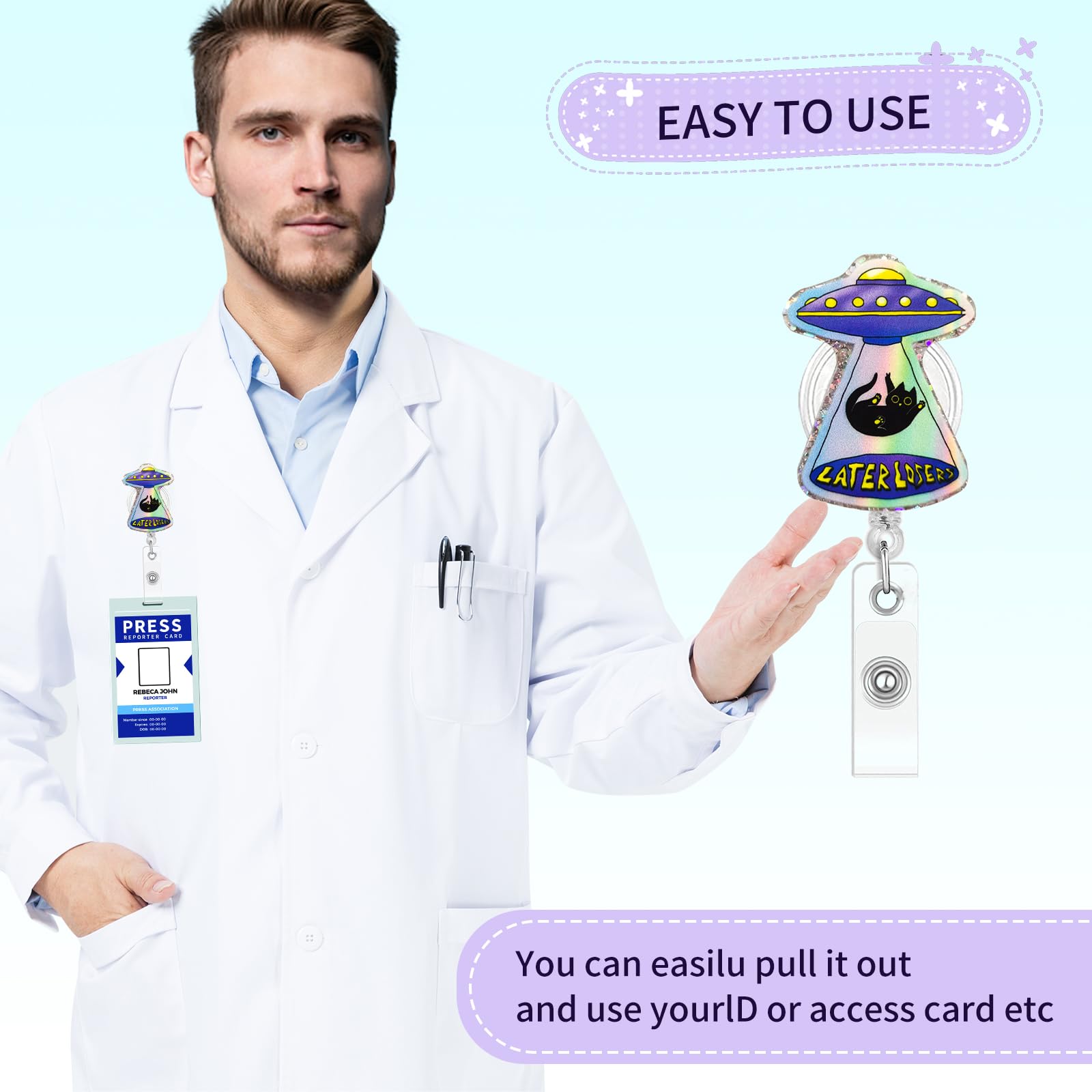 【Material】Cute UFO Cat retractable badge reel is made of high-quality acrylic, and the rope is mainly made of high-quality nylon material, which is strong and durable. They are lightweight and feature serrated alligator clips that will never drop your ID.