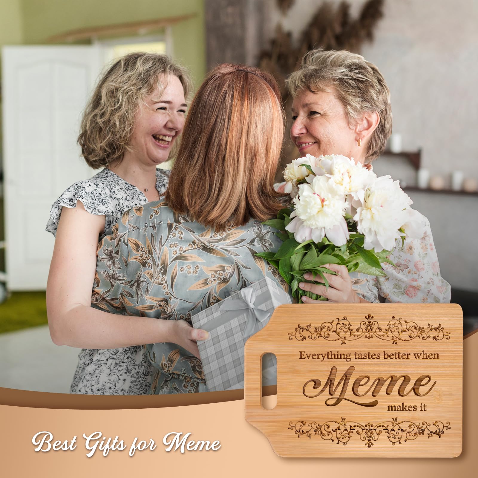 Meme Gifts for Meme: Express your gratitude to your meme with this special cutting board meme gifts featuring the phrase "Everything tastes better when my meme makes it." Whether it's meme's birthday, Mother's Day, Thanksgiving, Christmas, or simply a gesture of appreciation, this cutting board will remind your meme of your love every time she uses it