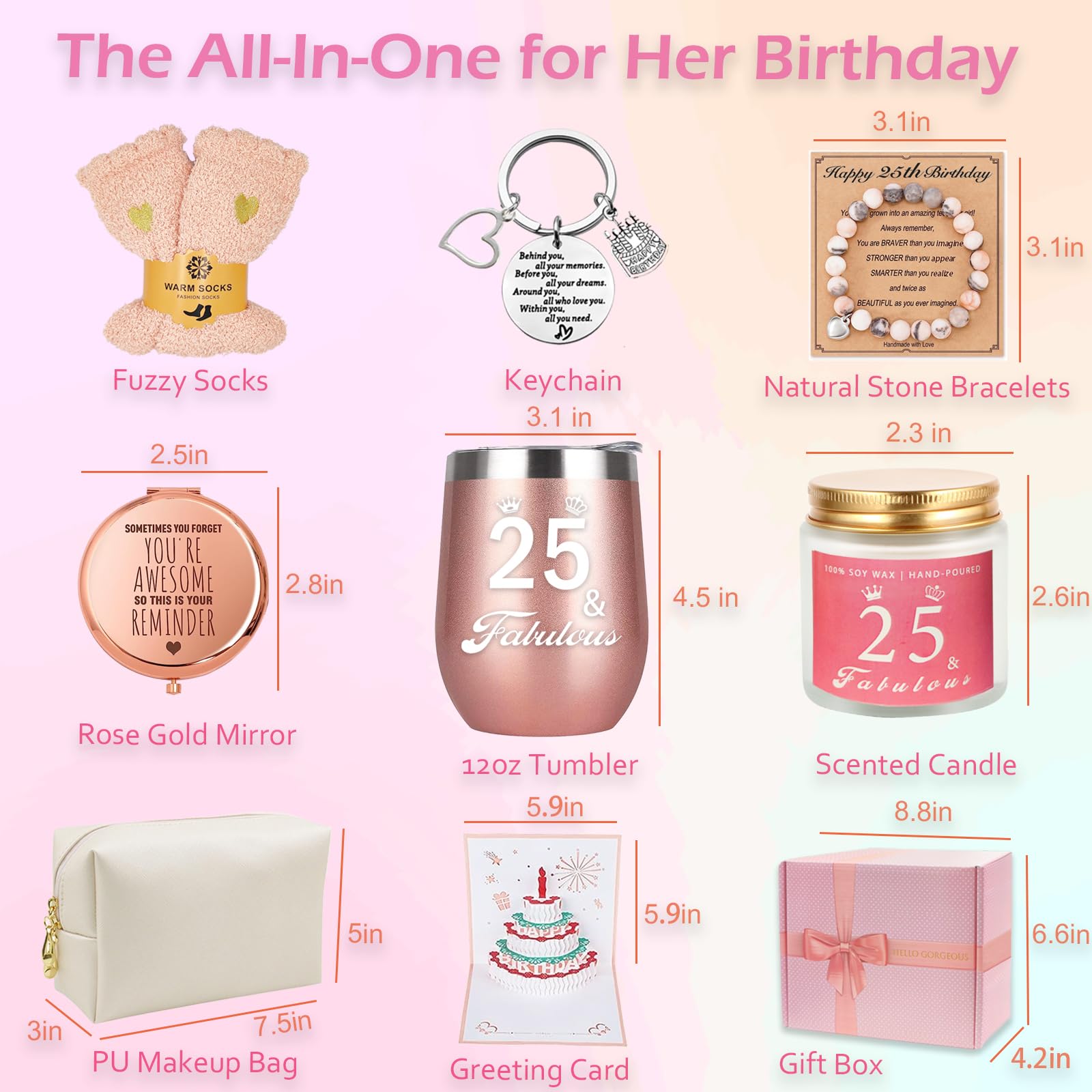 【25th Birthday Gifts For Her Women】 Our exquisite gift box is made to impress every lady at first sight,try this unforgettable cute gift set for 25th birthday womanl! Your best friend will certainly feel spoiled! On her 25th birthday, Awfrky gift box is a meaningful gifts for women, mom, bestie, best friend, coworker to warm her heart & let her know she is special!