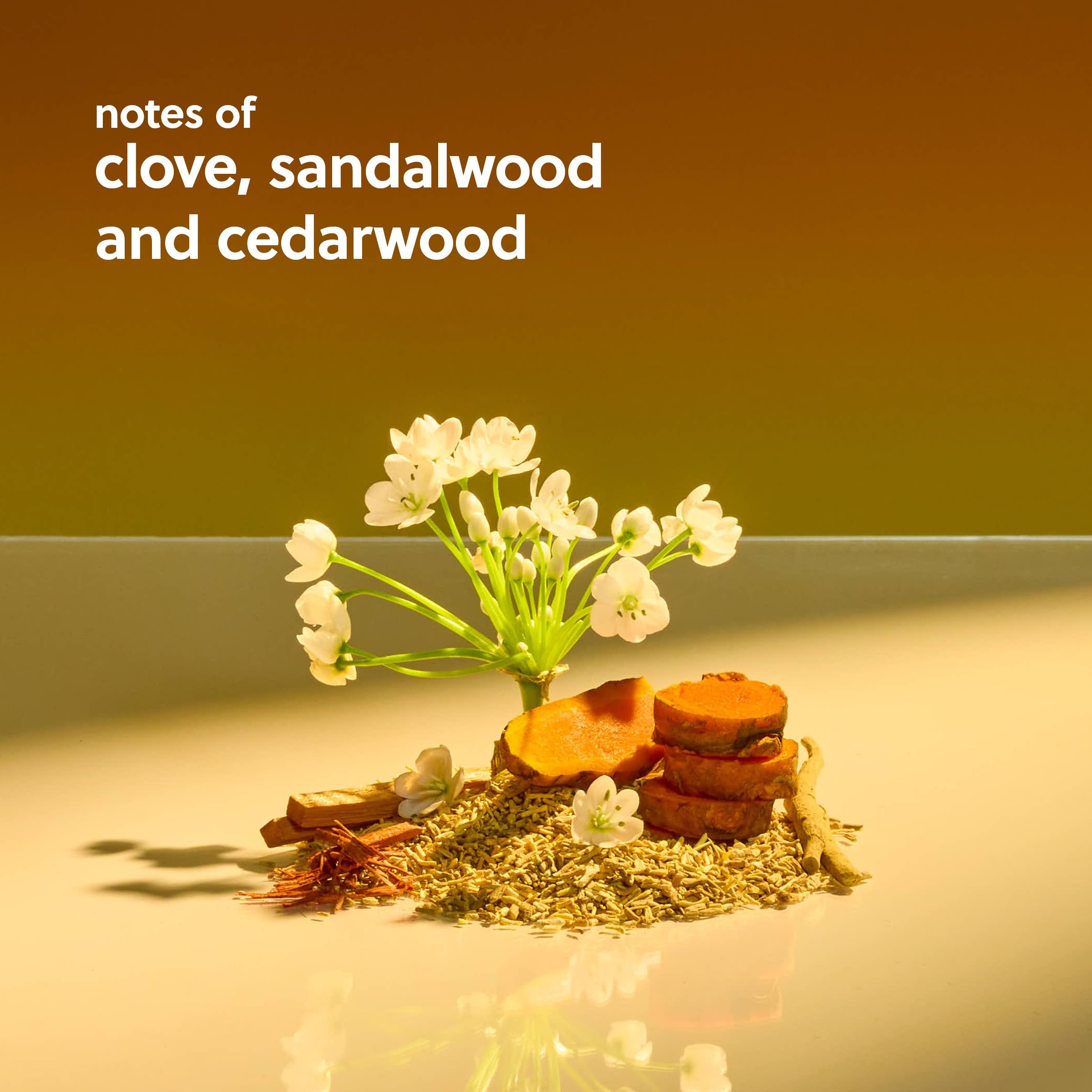 A grounding, woodsy scent that emits a warm aroma with notes of clove, sandalwood and cedarwood