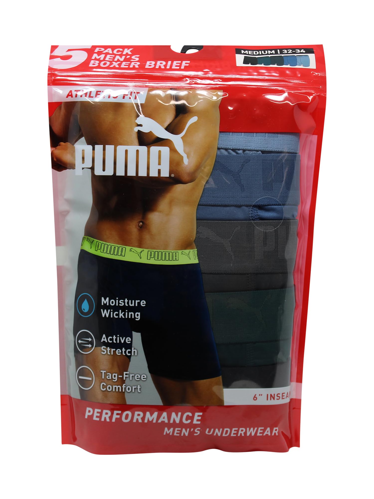 Description The essential 5-Pack Active Stretch Boxer Brief from PUMA is engineered for working out or just being on the go. An ergonomic design keeps these boxer briefs in place and on high performance. We created these briefs with moisture wicking fabric, so you can experience cool comfort anytime, anywhere. Stretch fabric moves with you, and the comfort waistband and flatlock seams team up for a smooth ride. And yes, we've gathered this favorite boxer brief into a 5-pack to ensure you always have a wear-it-wash-it rotation at hand.
