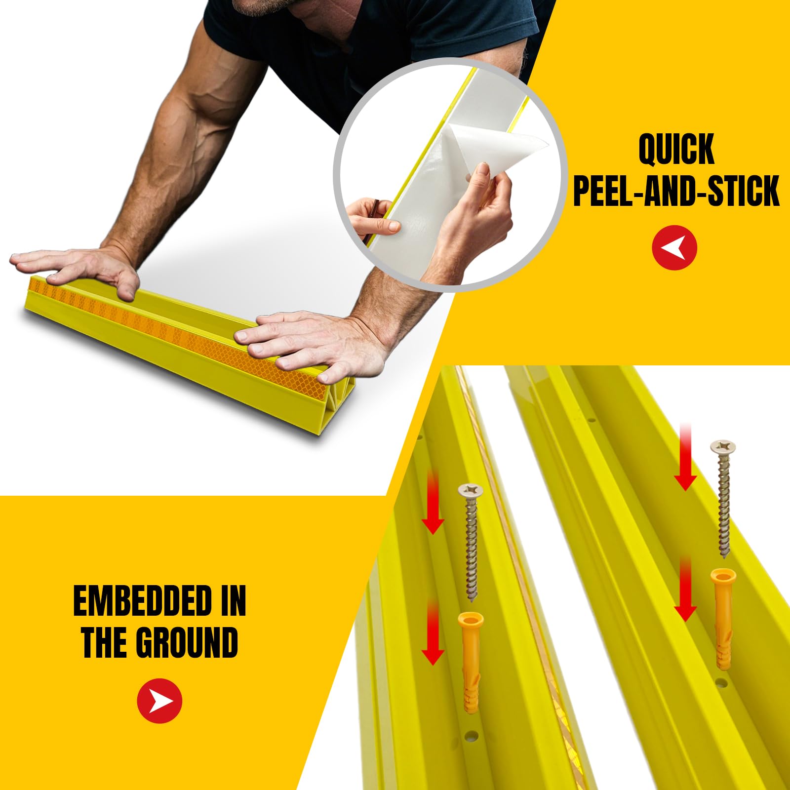 2 Mounting Options: The parking block can be installed in a peel-and-stick style or fixed by using the included screws into the pre-drilled holes. It effectively guides vehicle parking within your designated spaces for both temporary and long-term use