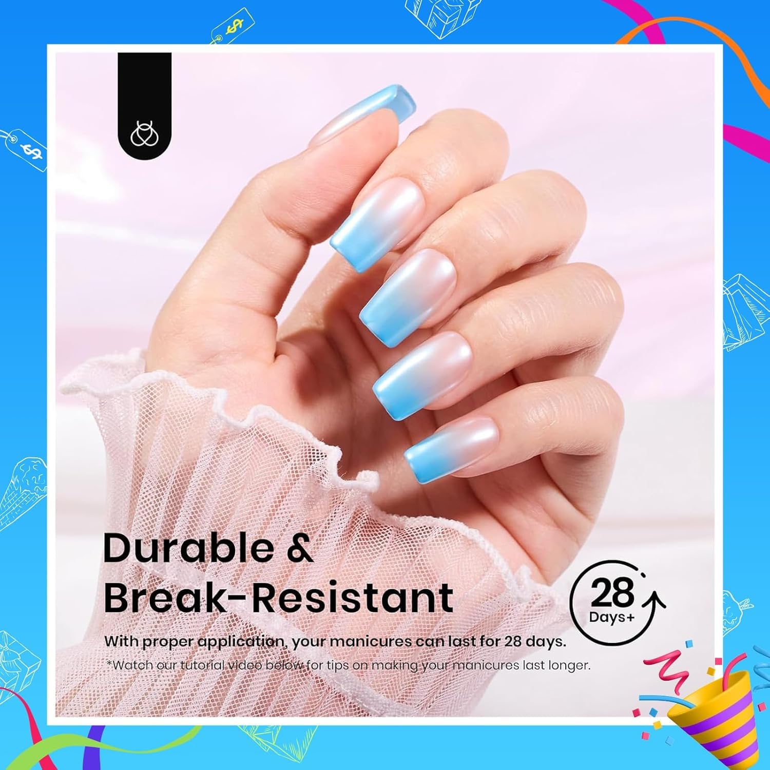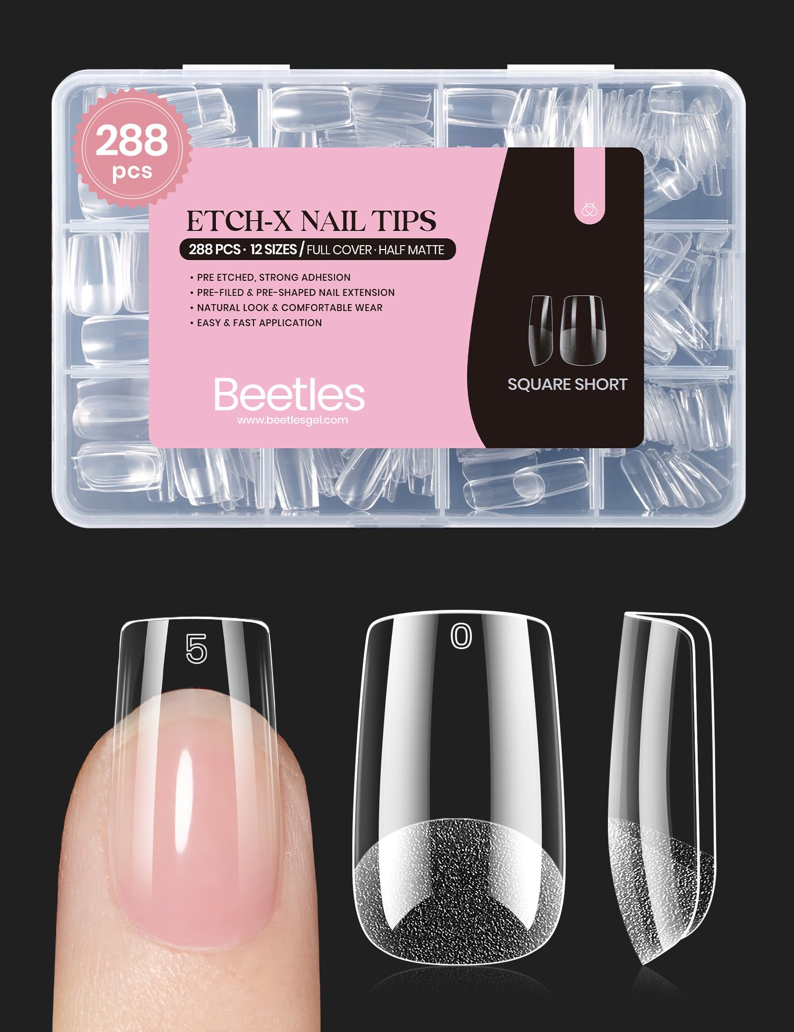 【No Shaping Needed】: Beetles short square nail tips choose inner half matte texture, with stronger friction, better fitting your natural nails. You can stick the full cover nail tips with the nail directly, and enjoy the privilege of "NO NEED TO FILE". Also, the nails are pre-shaped, saving time and effort. No worries, your nails will become thinner due to polishing, providing better care for your nails.