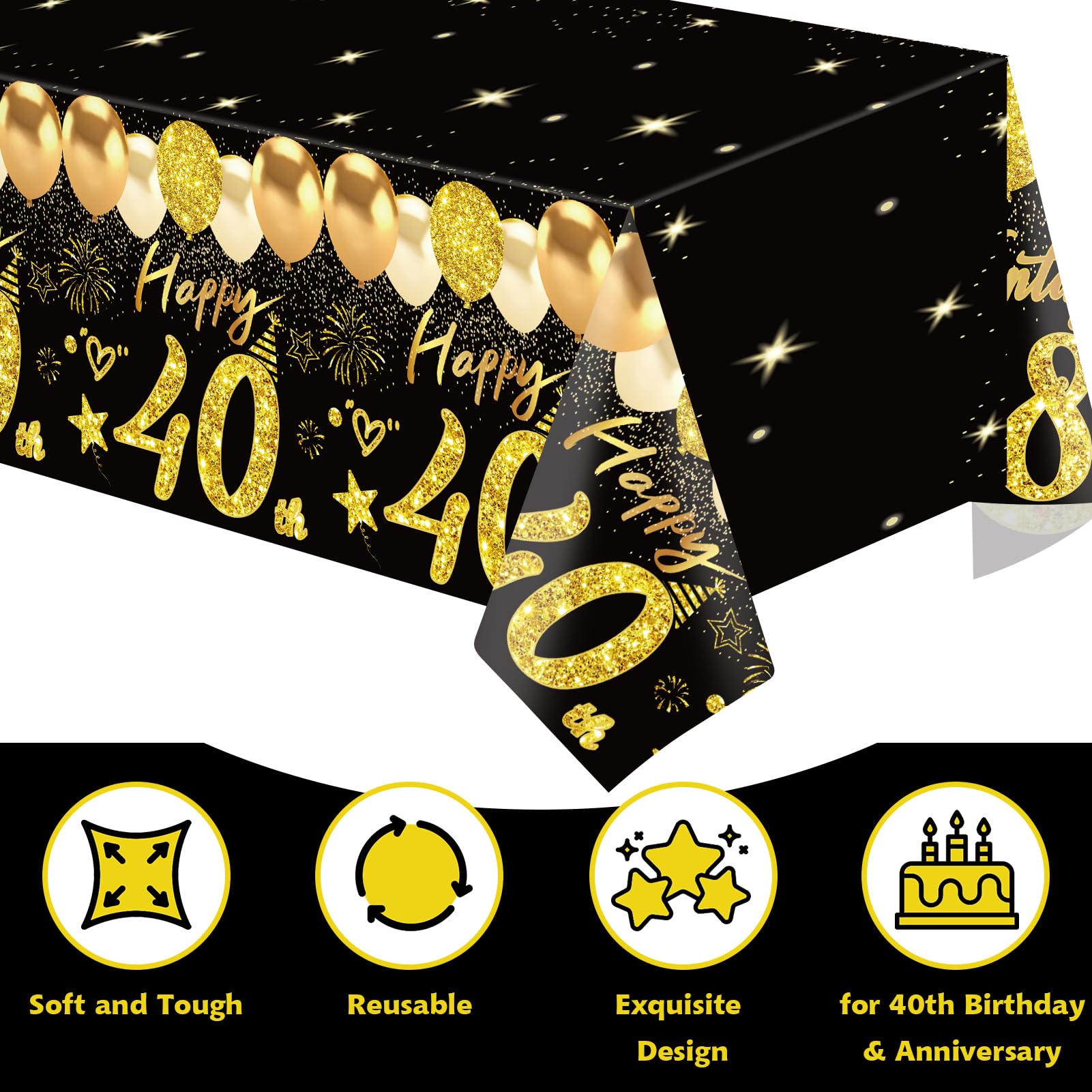 You Will Get: 2pcs black gold 40th birthday table clothes (108 x 54 inch), fit most rectangular tables and a few round table