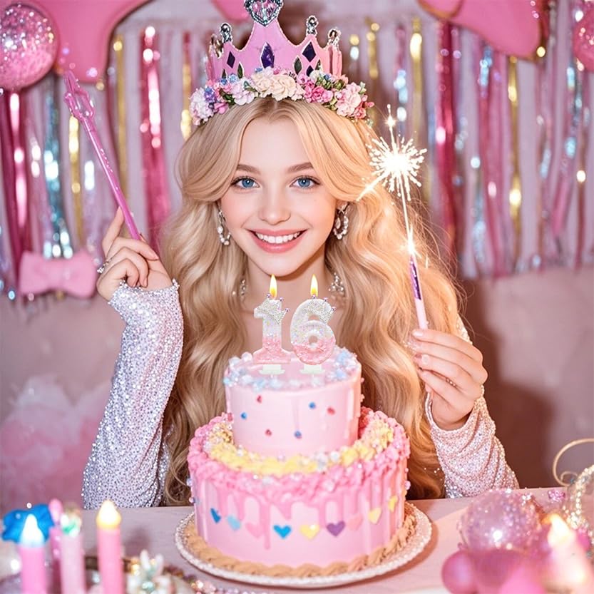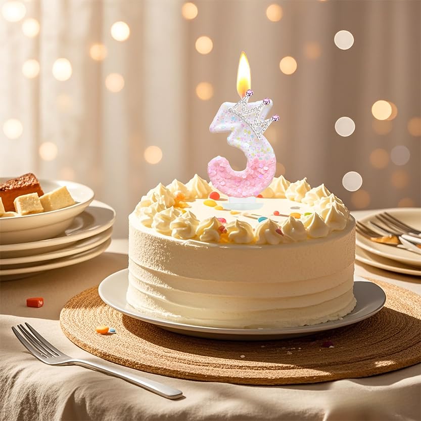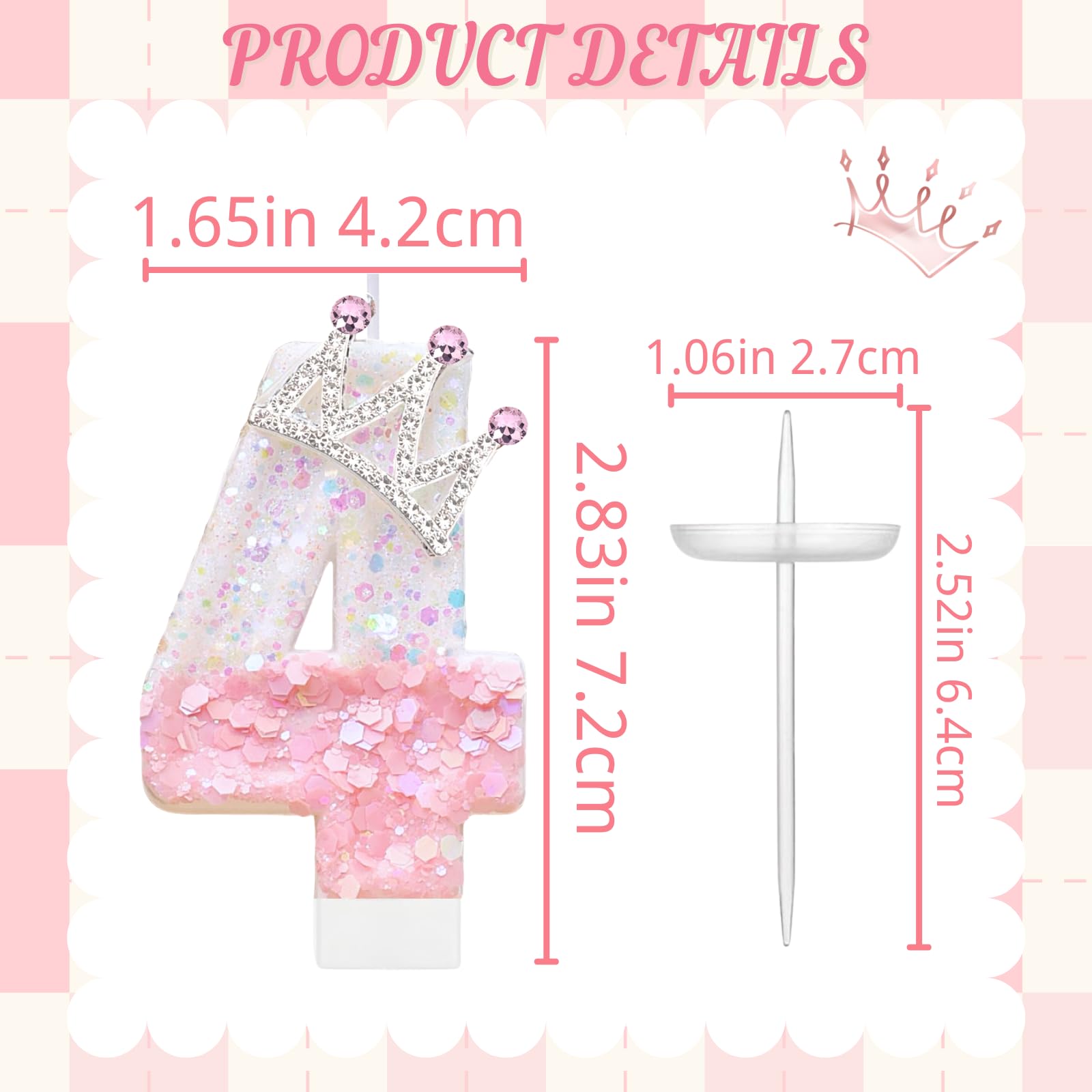 Sparkling Pink Crown Candle for a Royal Celebration:Make your little princess feel extra special with this glittery pink birthday number 4 candle, featuring a charming pink crown design perfect for princess birthday cakes. Ideal for princess birthday decorations, this candle adds magic to any celebration.