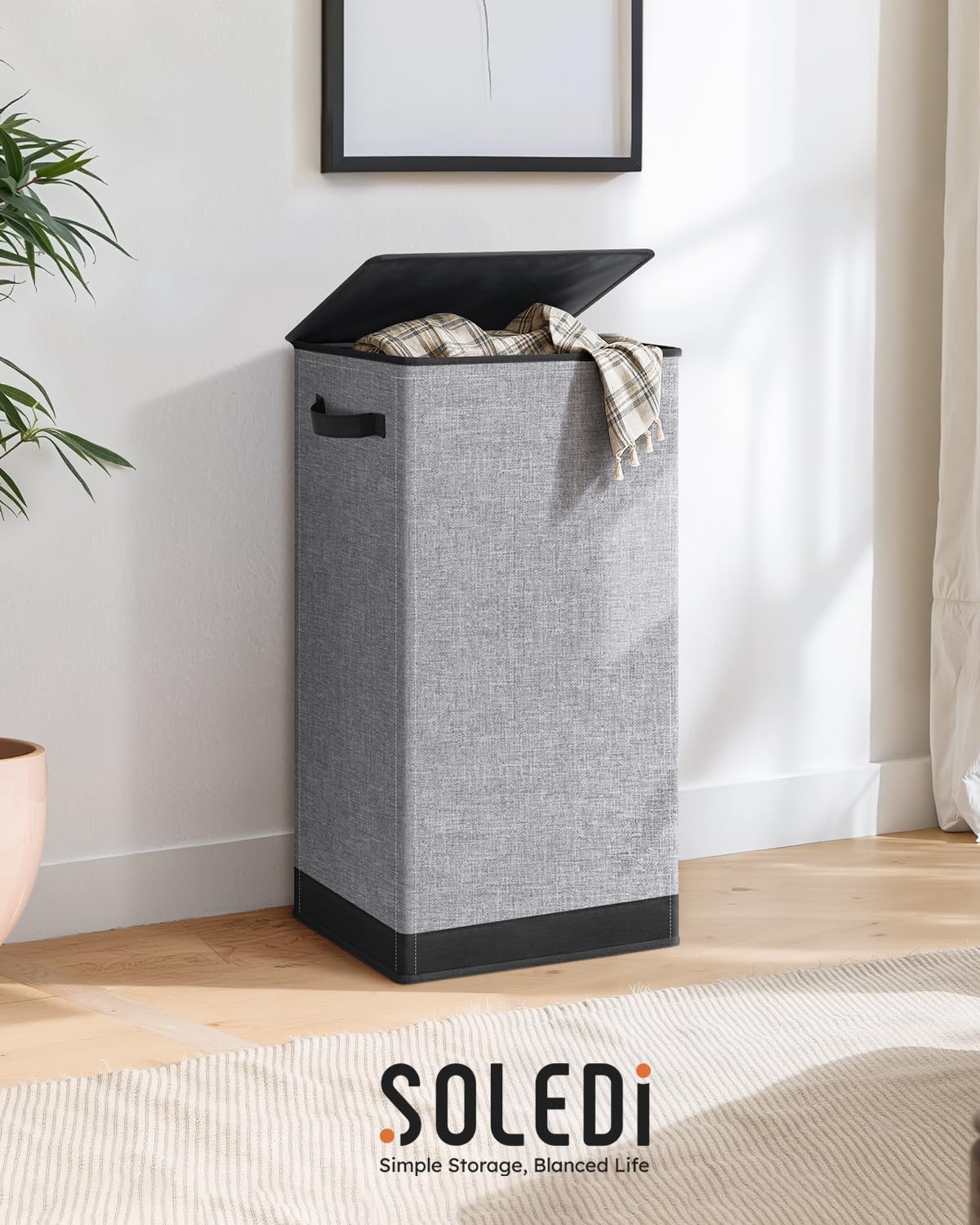 【100L Super Capacity】SOLEDI clothes hamper standing size 16.3"L×12.4"W×29.9"H, 100L large capacity clothes bin to meet the week's change of clothes storage, reduce the number of weekly trips to the laundry room. 100L tall laundry basket is large enough to hold all the family member's clothes or children's toys. Good choice for campus dorms or family life.