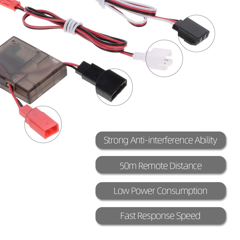 This winch control set is designed for Traxxas HSP Redcat HPI Tamiya CC01 Axial SCX10 RC4WD D90 RC crawler for controlling the winch. It features strong anti-jamming ability, low power consumption and a stable performance. Thus, it is capable of enjoying the fun of automatic controlling your winch within 50m. Features: Replacement for 1/10 Traxxas Axial RC4WD Tamiya HPI Redcat. Supply you with a fun of RC car DIY. Small compact size, easy plug and play. Very low power consumption and stable performance. Strong anti-interference ability features a high receiving sensitivity within 50m. Wireless remote receiver possessing fast response speed is conductive to control the winch easily. Any problem, please contact our store without hesitation. Honor to serve you. Specifications of Controller: Color: Black & Red Control Distance: 50m Size: 51 * 25 * 15mm Weight: 13.6g Specifications of Receiver: Color: Black Battery Compatibility: 2-3S LiPo (excluded) Work Voltage: 6-11.1V Size: 41 * 31 * 10mm Weight: 8.8g Package Information: Package Size: 9 * 8.5 * 2cm / 3.54 * 3.35 * 0.79in Package Weight: 31g Poly bag package Note: There could be a few deviations due to manual measurement or slight color difference owing to photographing condition. Thank you for your understanding. This product is not waterproof. Some Lipo battery voltage can be higher than 11.1V. Please be careful and check voltage before using your battery. Use a BEC if needing to use a 3S lipo battery. Package List: 1 * Winch Controller 1 * Receiver 2 * Wire