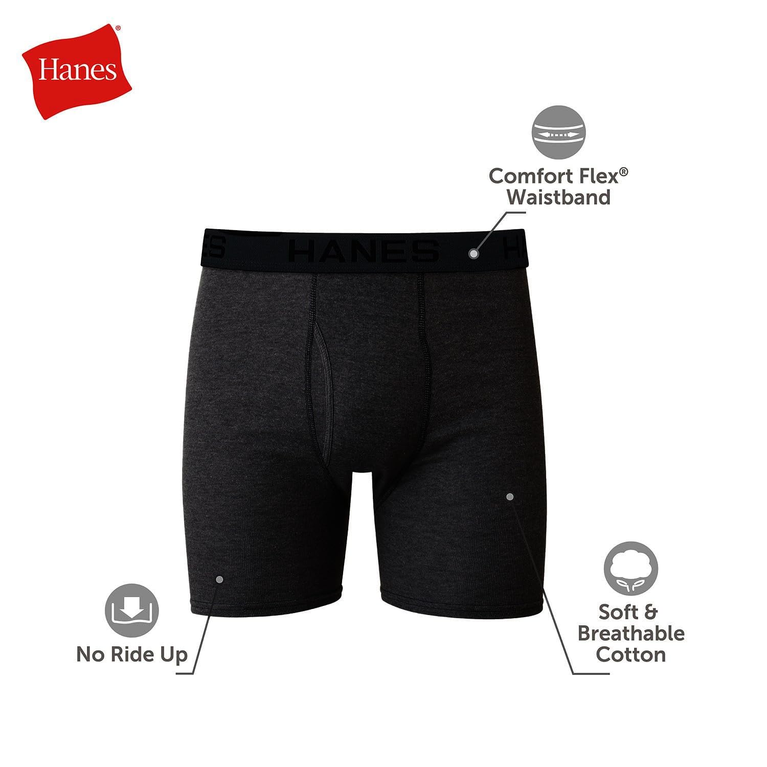 Description Hanes men's tag less no ride up boxer briefs with comfort soft waistband