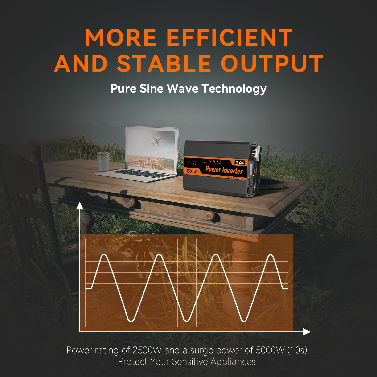 【Wide range of Applications】 – This 3500W pure sine wave inverter is perfect for sheds, camping, RVs, trucks, solar setups, and off-grid power. Supports 50Hz/60Hz output — durable construction with cooling fans for optimal heat dissipation.