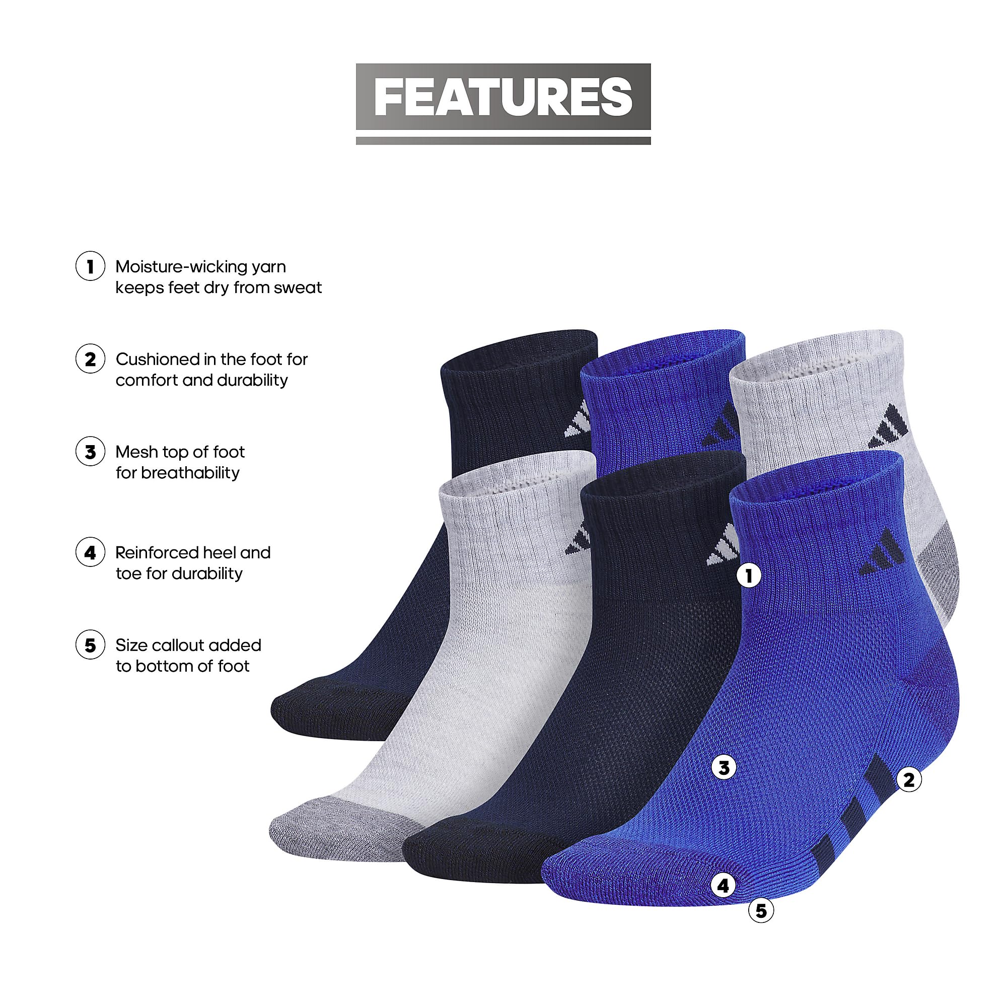 Feel cool and dry with Adidas Climacool, which supports your body's cooling system using advanced materials. Boys adidas socks wick away sweat to keep you comfortable.