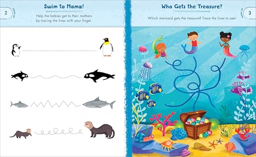 Make learning fun with vibrant ocean animal activities for kids ages 3 to 5 Discover new ways to learn and play with the help of colorful creatures under the sea! This preschool activity book immerses kids in an underwater adventure that teaches colors, numbers, letters, words, shapes, and patterns. Watch kids' eyes light up as they connect the numbered dots on an octopus, color jellyfish by letter, and help mermaids find treasure by tracing a path. The school of fishy friends in this ocean animal activity book makes learning exciting! Go beyond other preschool activity books to find: Engaging varietyβKids will dive into learning different skills with the help of word searches, mazes, matching games, coloring activities, and more. High-quality designβBright full-color illustrations fill the pages with oceanic magic, and sturdy paper makes it easier for little hands to draw and color. Portable sizeβThis tablet-sized choice in preschool activity books is perfect to bring on the road. Educate and entertain with the ocean animal-themed activities in this delightful preschool book.