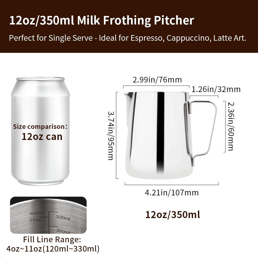 Premium Material:Crafted from food-grade 304 stainless steel, this watchget milk frothing pitcher is not only durable and wear-resistant, but also heat-resistant! The polished interior prevents rust and ensures long-term use, while its easy cleaning and use make it a breeze to use. And with excellent temperature control, you can be sure you're getting the best every time!