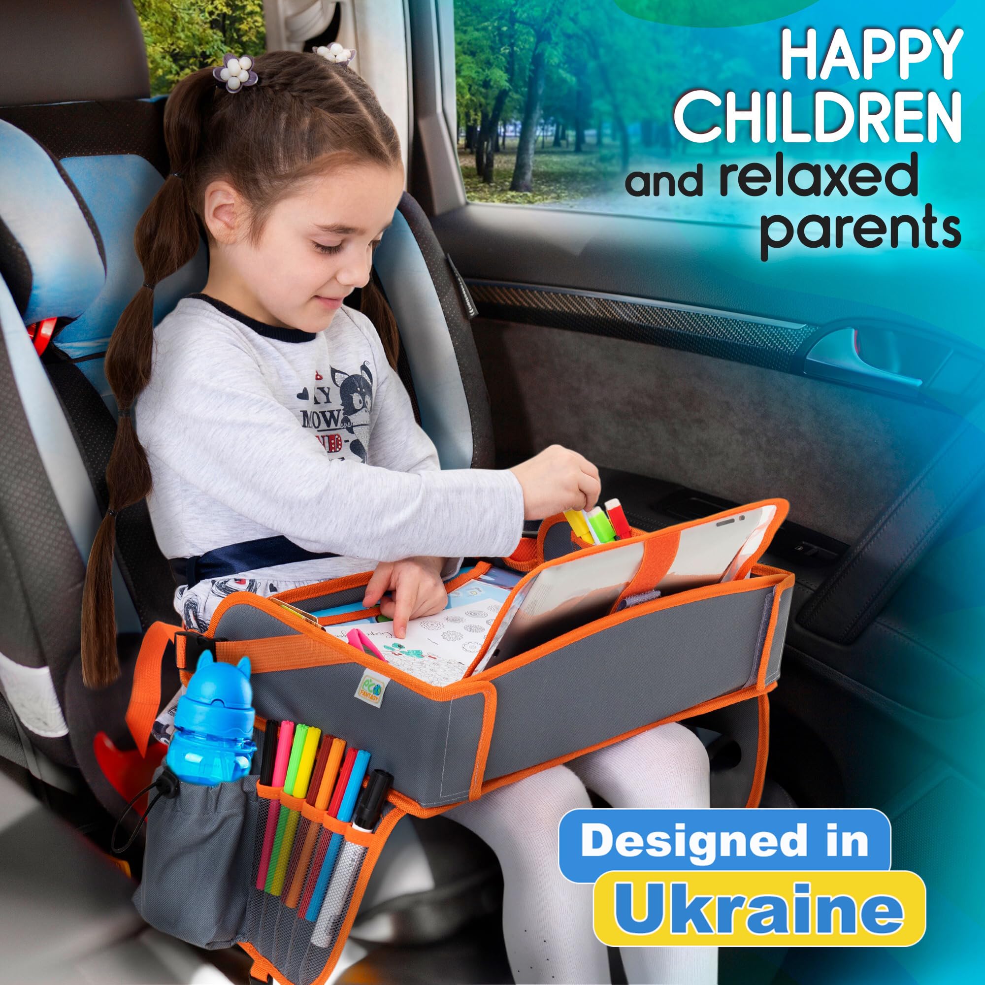 Durable And Multi-Purpose Car Tray - This carseat activity tray for toddlers is made using non-toxic Polyester and strong stitching without relying on any harsh materials to offer just the right balance of quality and durability for long term use. Travel tray for kids car seat designed with a waterproof dry-erase surface for your little one to draw on and features strong buckles that keep it securely in place to minimize shaking. It's a great addition to travel essentials for kids, ideal for use as a car desk or a car table during travels.