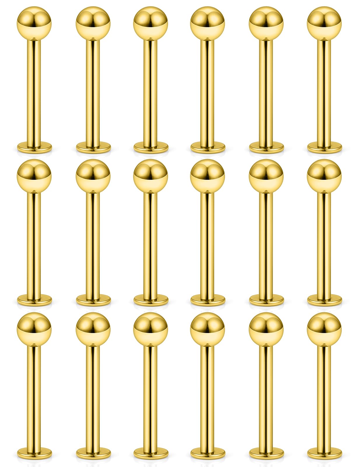 MEASUREMENTS--Lip Rings Studs Gauge Size: 12G (2.0mm); Straight Bar Length: 10mm(3/8 Inch),Top Size:4mm, The Different Sizes Made It Easy to Find the Right One for You. Color: Gold-tone.