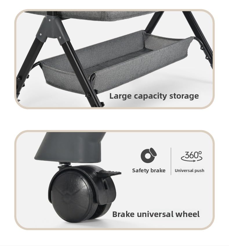 【Multifunctional Crib Design】Can be connected to the crib next to the adult bed, sleeping in the same bed or independent sleep mode. This baby shaker can be switched to cradle mode with one click, which is convenient and flexible. The built-in diaper table design makes it more convenient for mothers to take care of their babies while protecting their waist health.