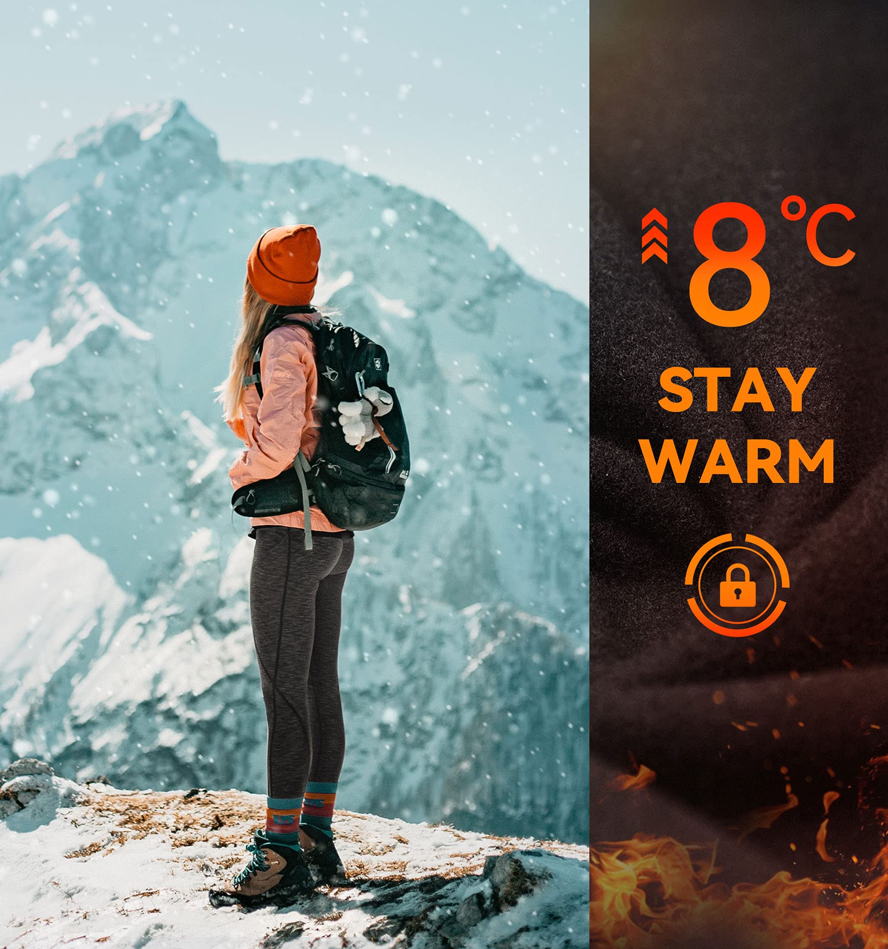 Squat-Proof Stretchy Fabric : Engineered with high-tech 4-way stretch material for maximum flexibility and lasting warmth. The moisture-wicking fabric efficiently pulls sweat away while locking in heat, making these thermal leggings for women reliable whether stretching, bending, or squatting—full support without slipping.