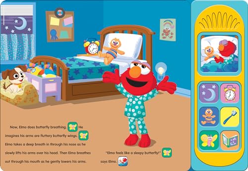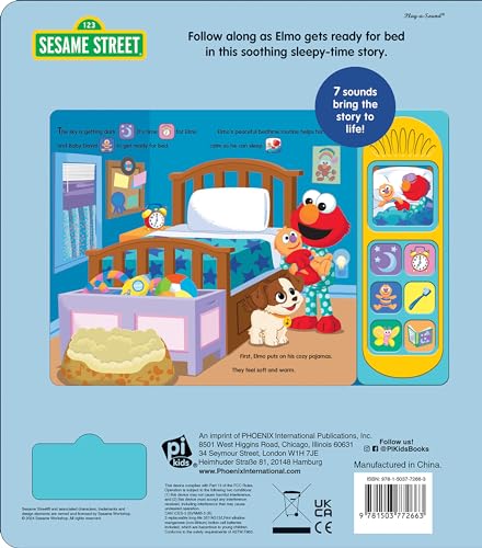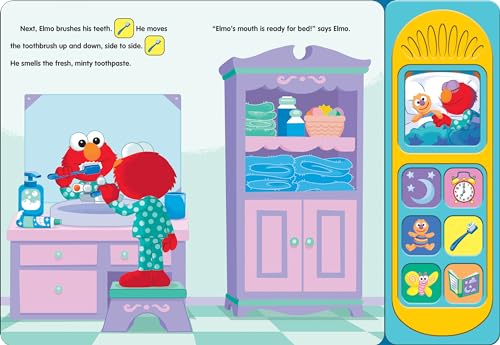 Follow along as Elmo gets ready for bed in this soothing sleepy-time story. Press 7 interactive buttons to hear calming music and sounds. Matching words with pictures and sounds enhances reading comprehension, and interacting with the story engages young readers.