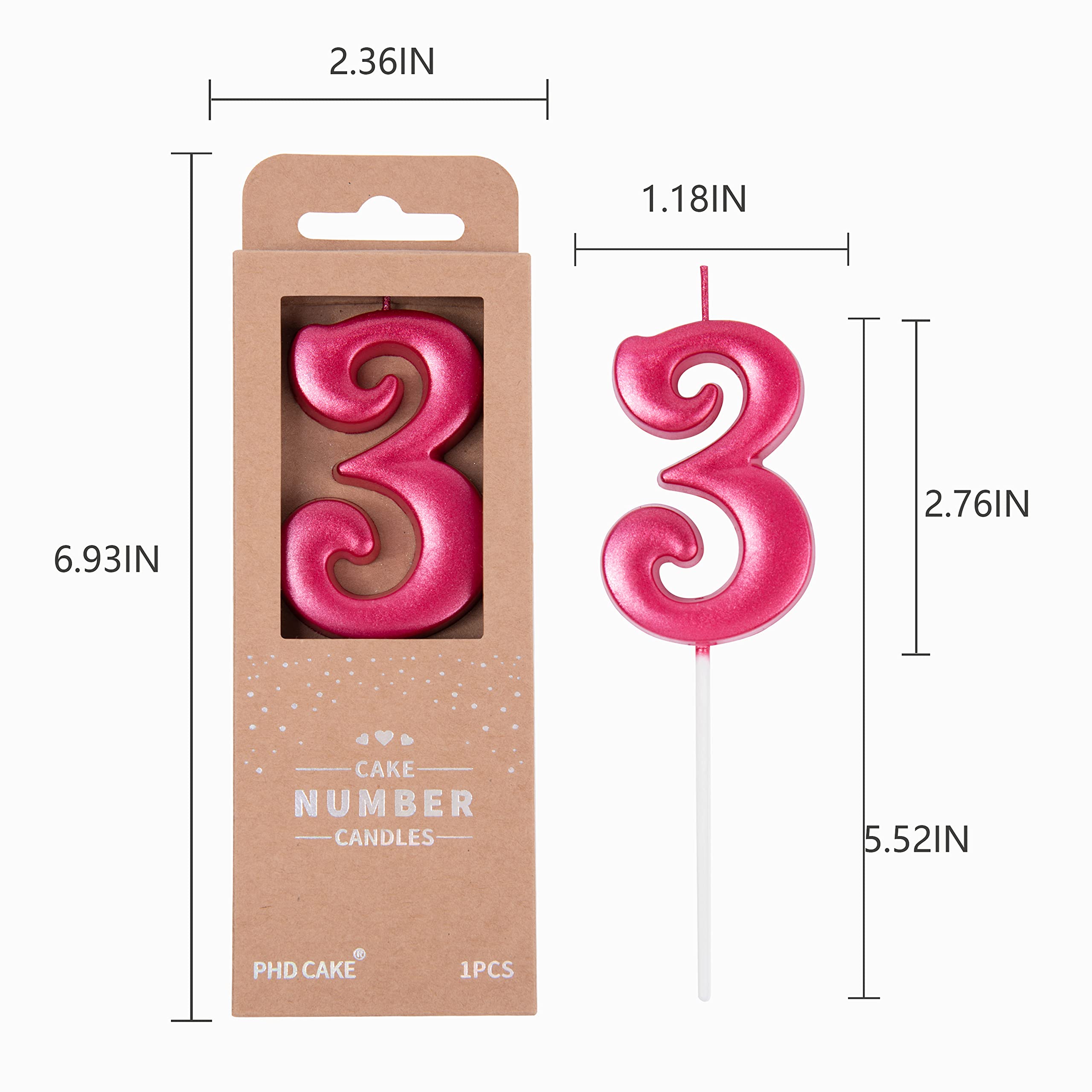New: 2.76 Inch Large Elegant Red 3 Number Birthday Candle designed to make your cake and birthday a unique and truly inspiring event.
