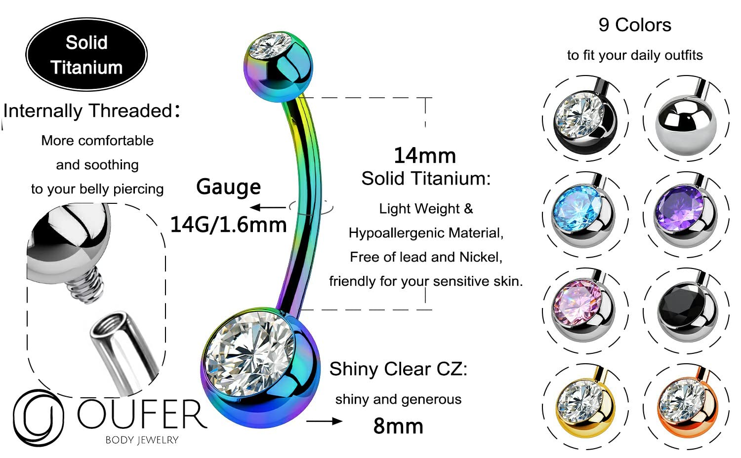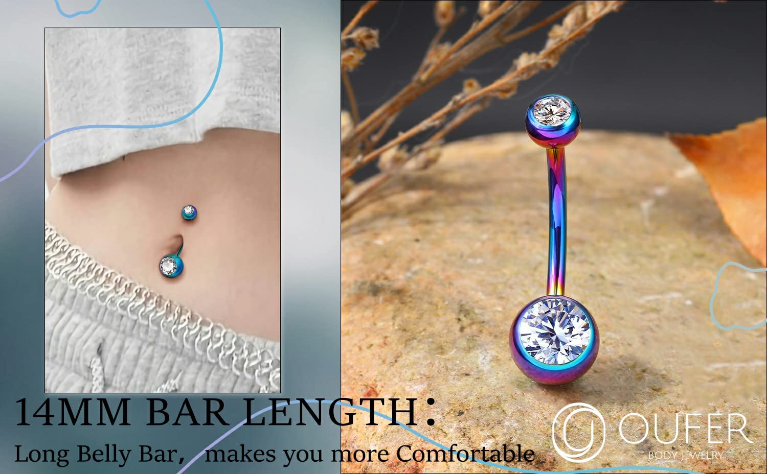 ❤NO irritations❤: G23 Titanium Belly Piercing Jewelry, Hypoallergenic, Nickel & Lead-Free, Can Be Worn Even on New Piercings, Good for the Sensitive Skin, Long Use Time