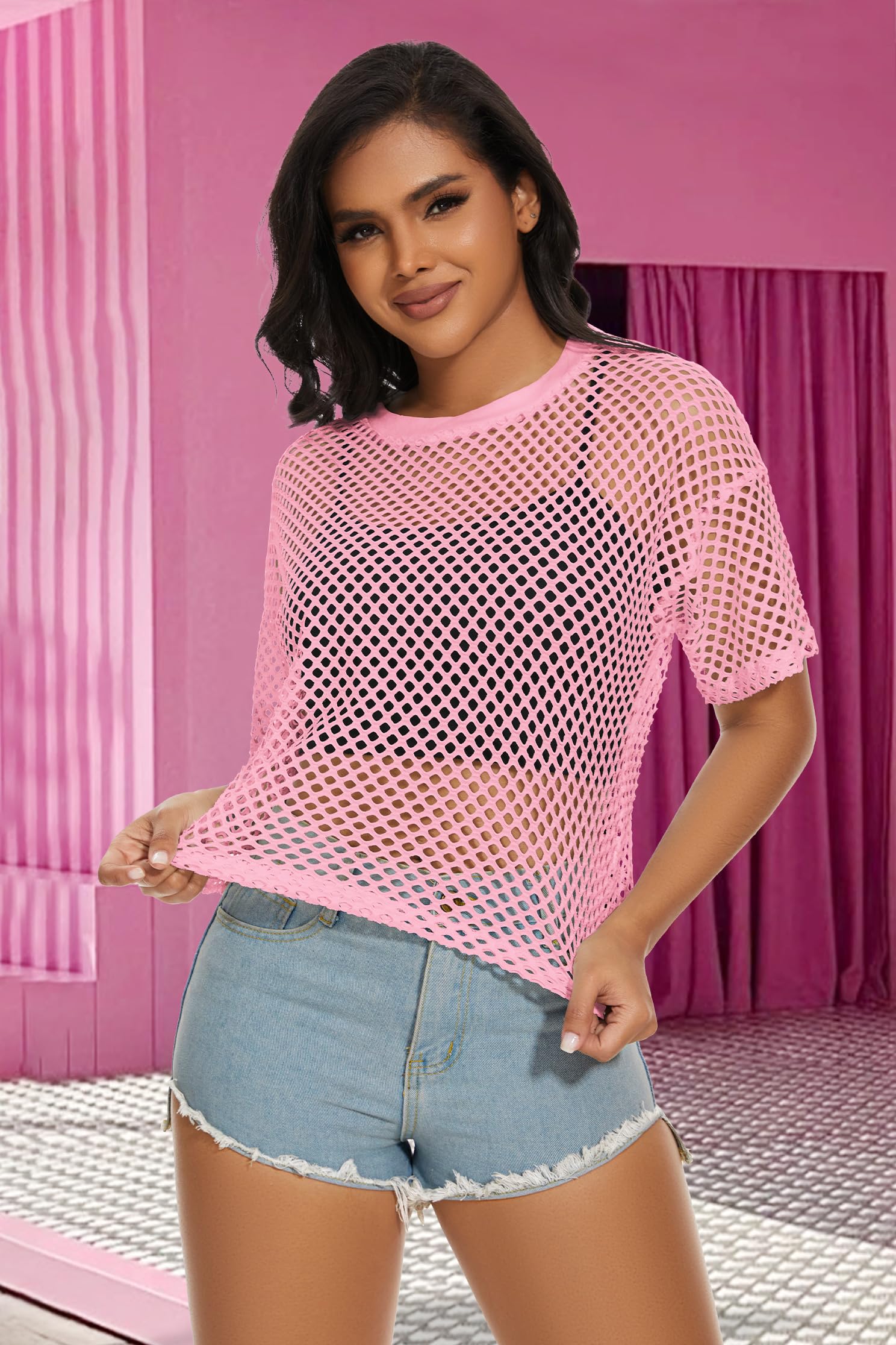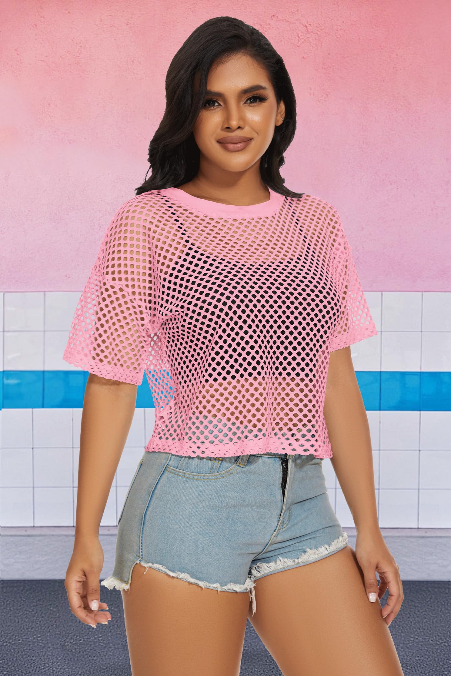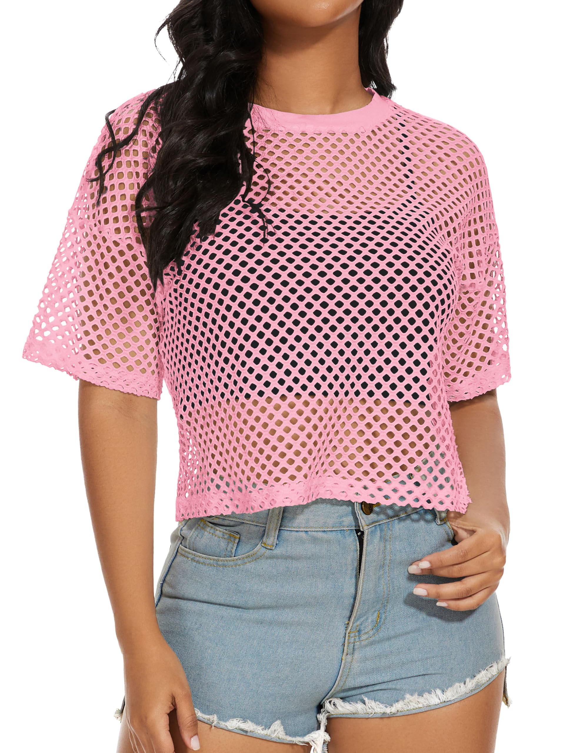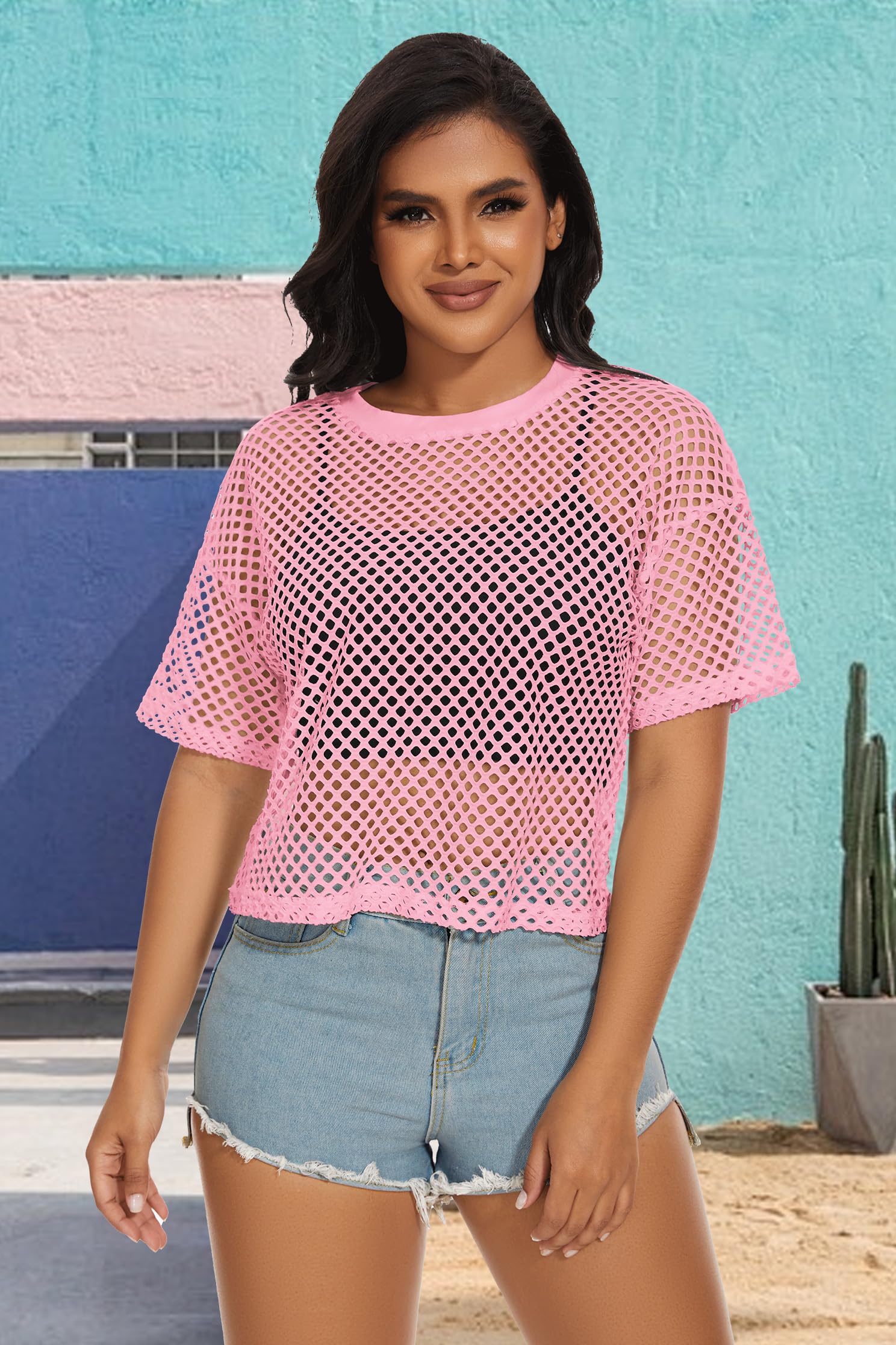 Material:The women fishnet top is made of breathable, lightweight soft fabric. And short sleeve mesh net cover up is for summer, keeping you cool and comfortable.
