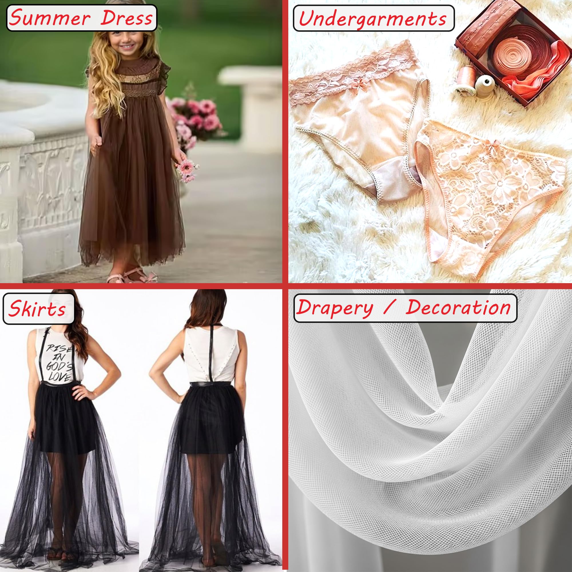 STRETCH MESH FABRIC FOR VERSATILITY - Designed with 4-way stretch, this power mesh fabric offers excellent elasticity and recovery, ensuring a snug and comfortable fit. Whether you're designing performance wear, lining dresses, or adding layers to your projects, this stretch mesh fabric provides durability and flexibility for a wide range of applications.