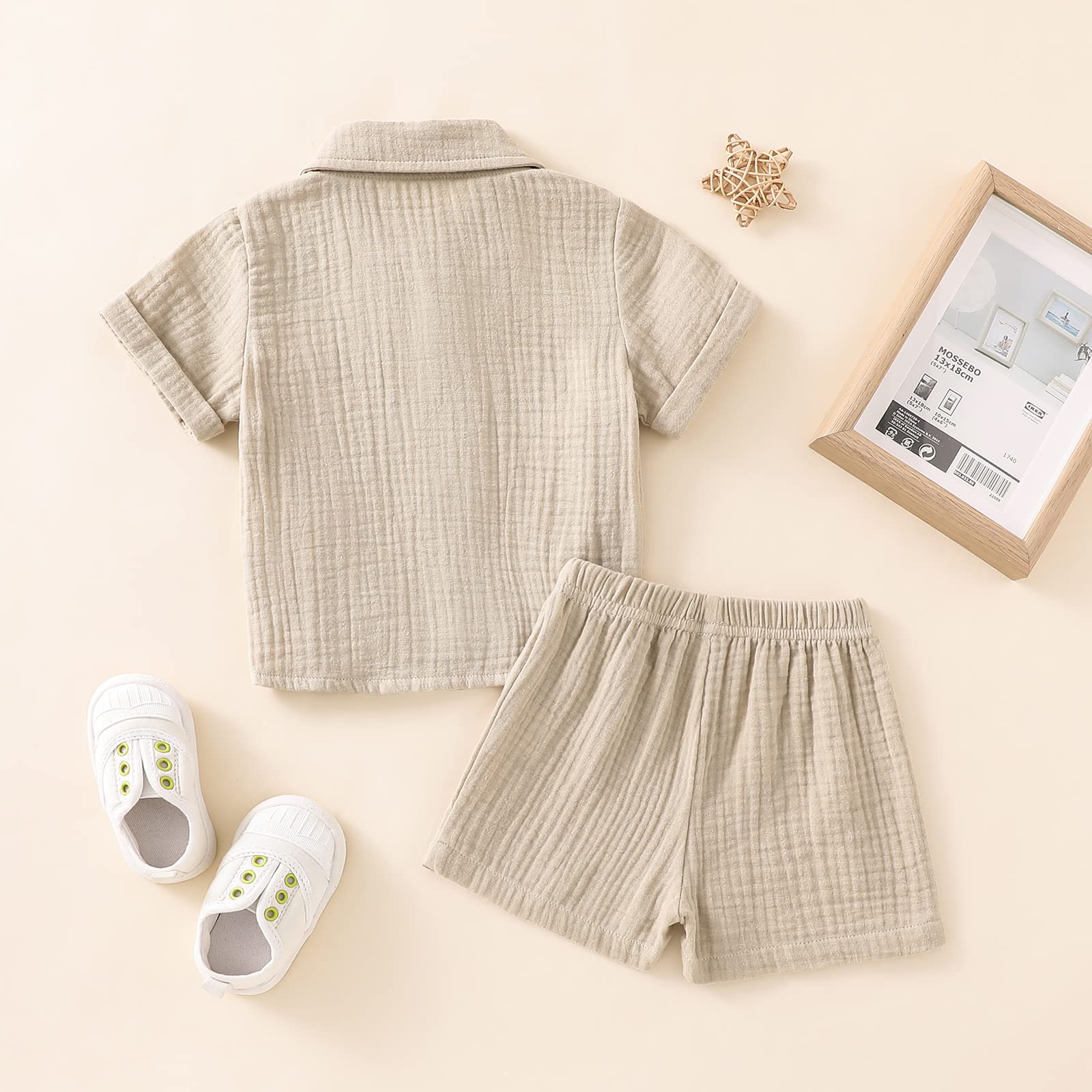 FEATURE - This button down shirts set is short sleeve, lapel neck, buttons, pockets, solid color, elastic waist and 2pcs set.