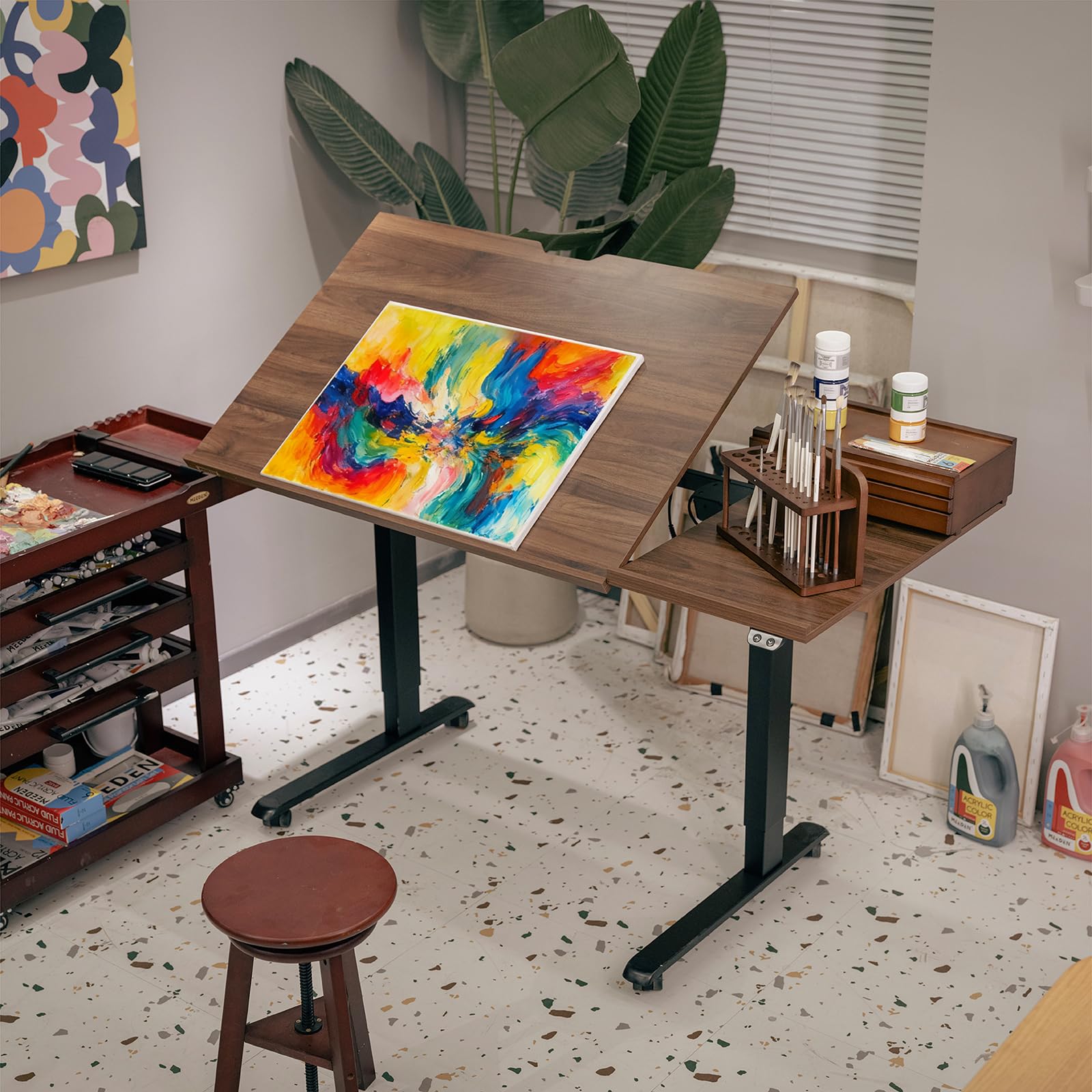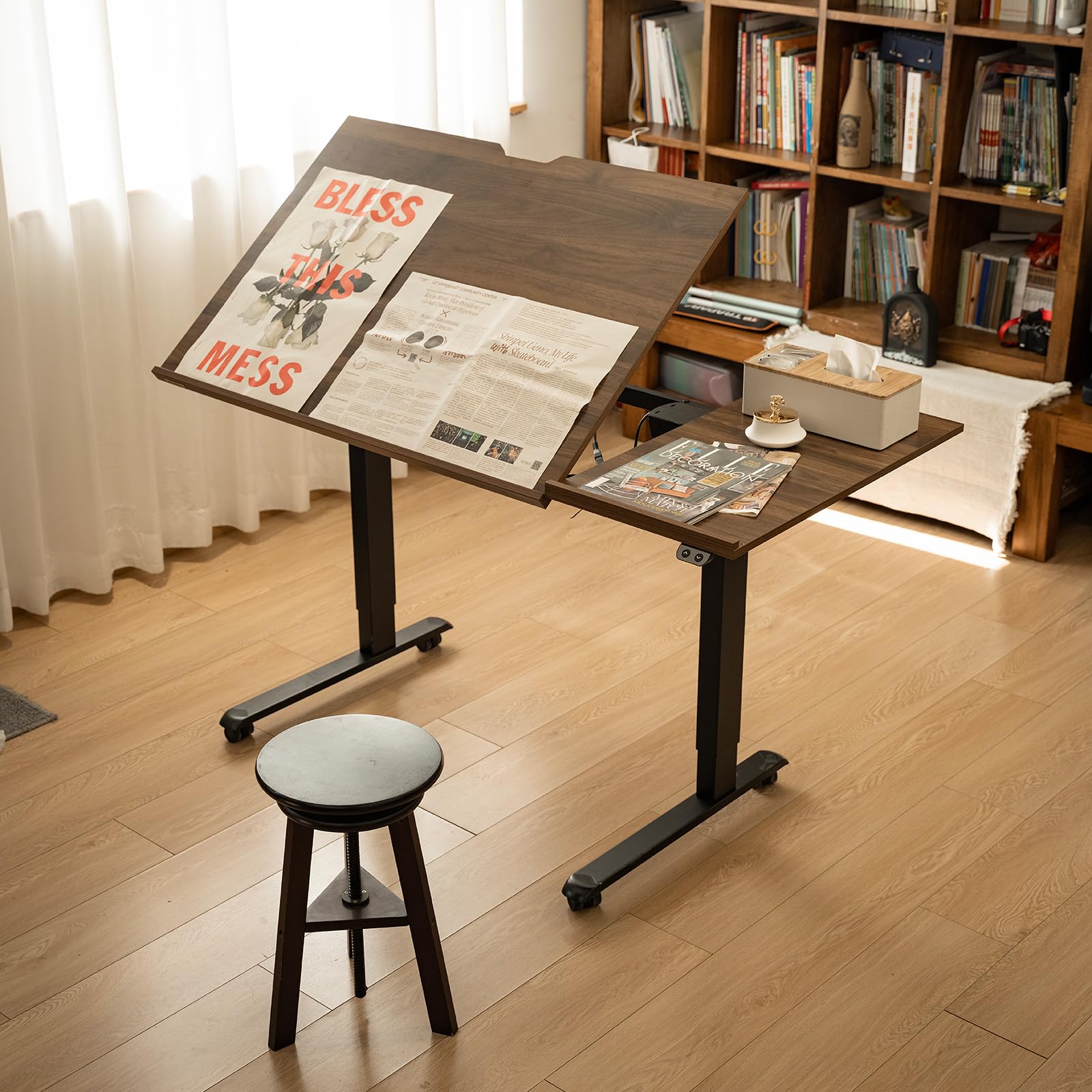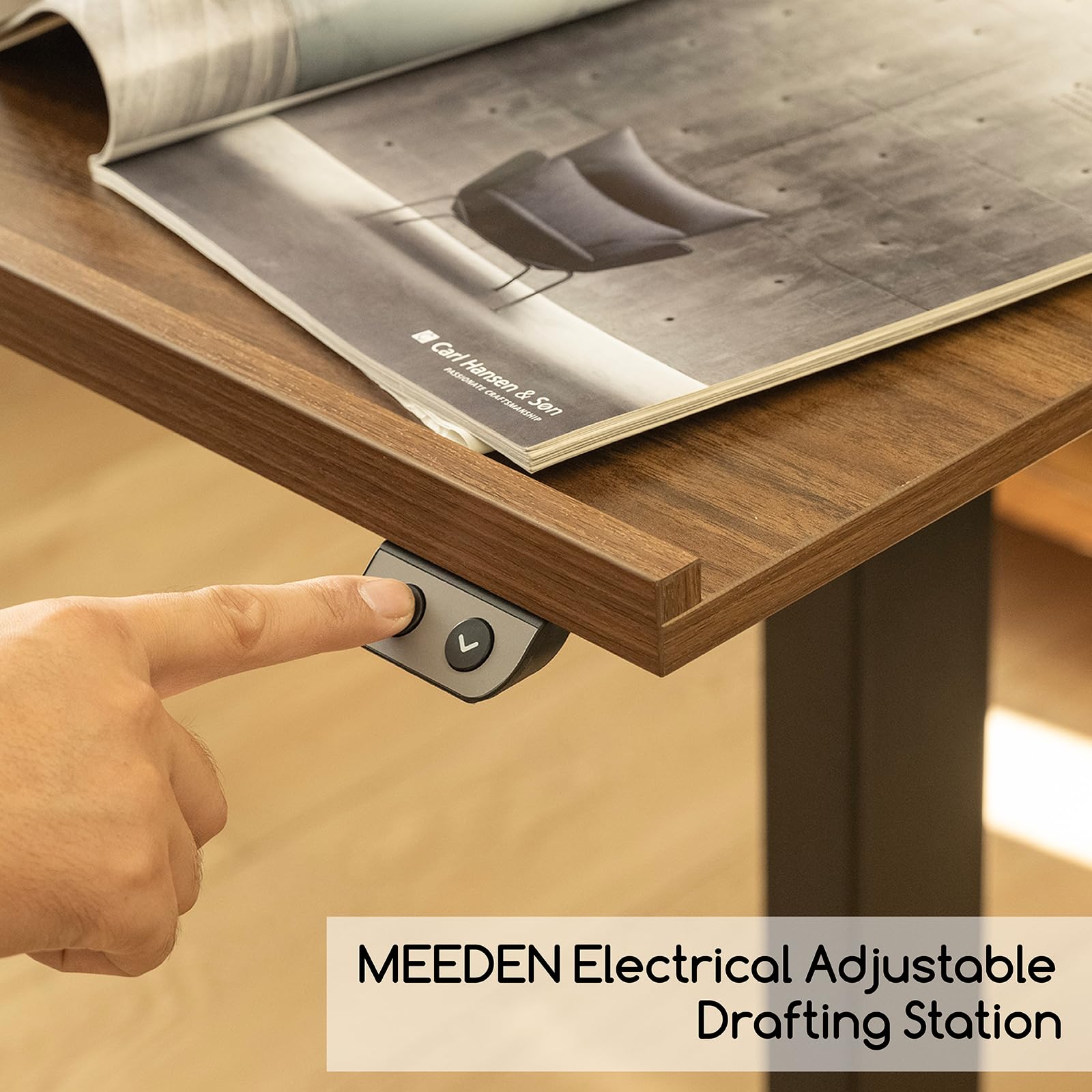 Machinery Stablity: MEEDEN electric drafting table is equiped with a sturdy solid machinery frame. With its 4 smooth lockable casters, this home office desk offers a combination of portability and stablity. Even when the table is raised to its highest position, you can confidently lean your body on it while working