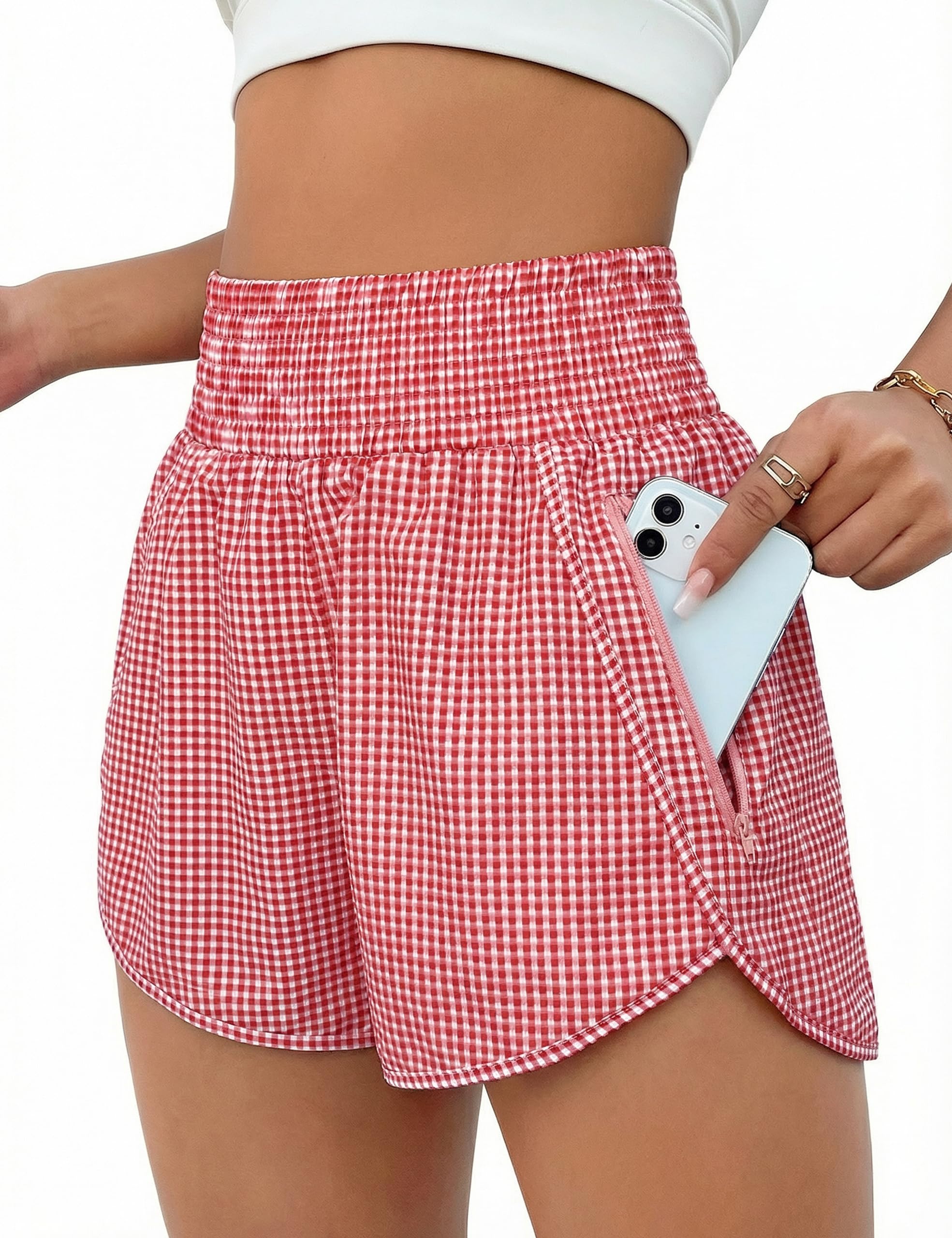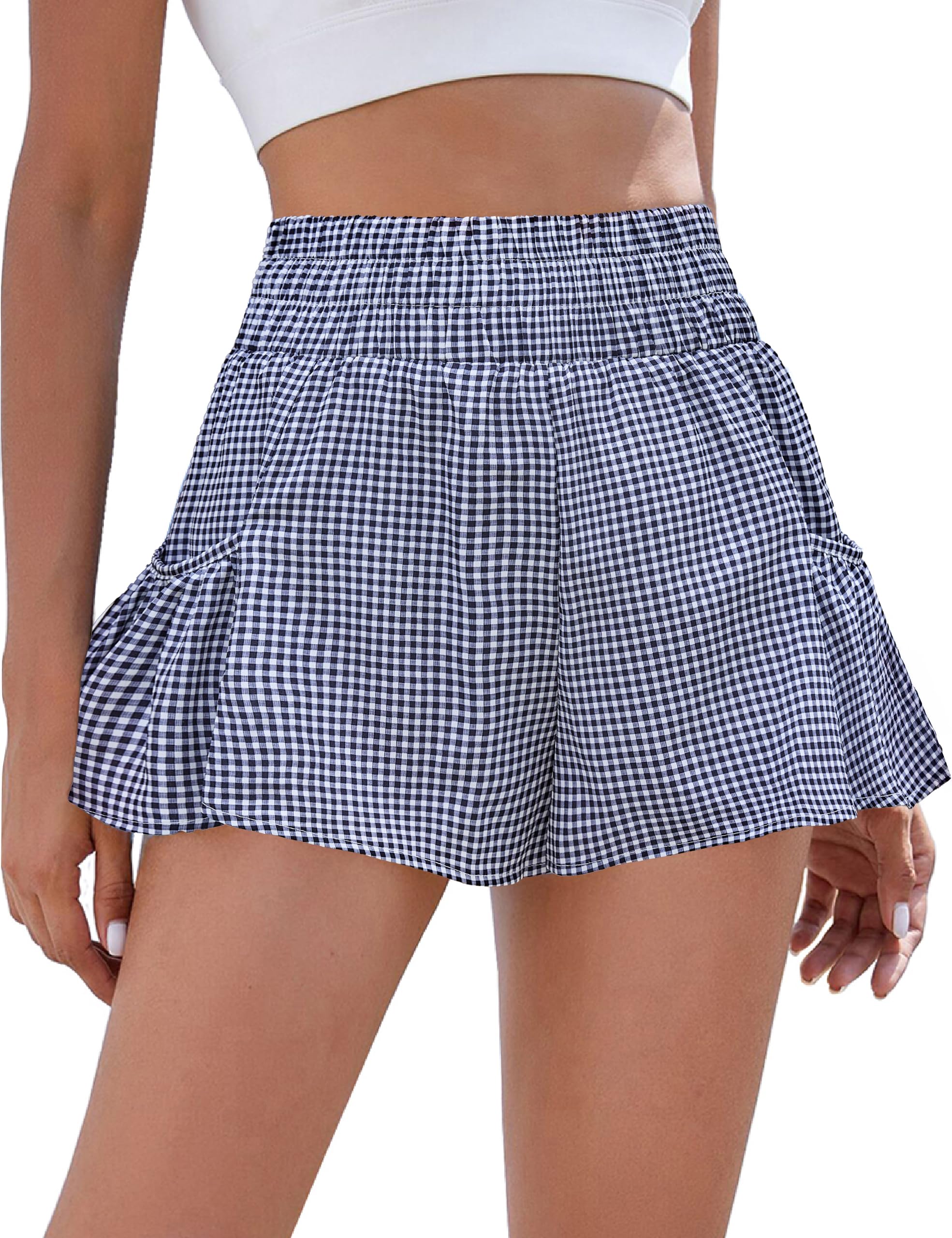 【Design】This gym shorts is feature with Super High Waist, Cute Side Pockets, Loose Fit, Lightweight and Quick Dry Fabric