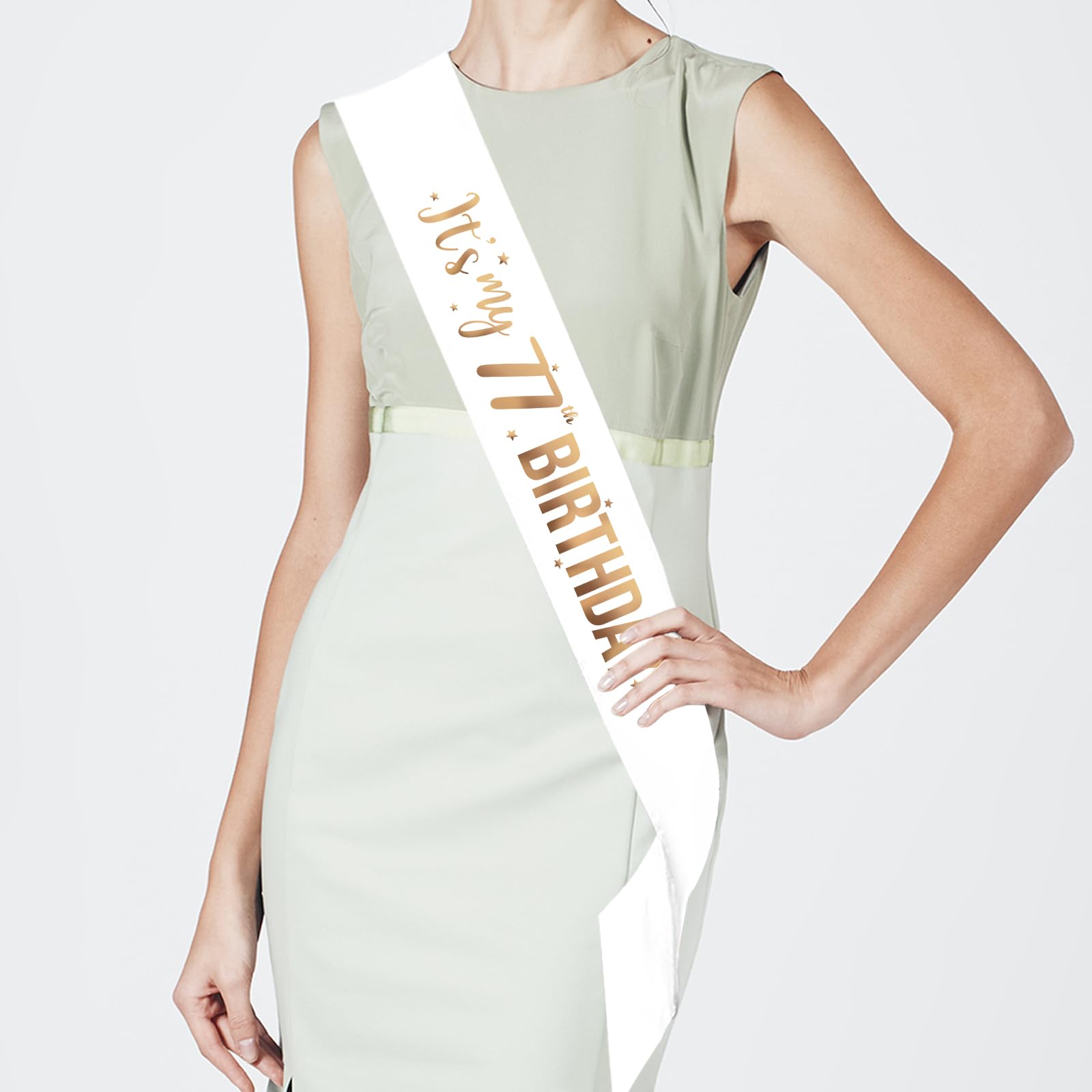 Make the 77th birthday party memorable - Leave good memories to family and friends with these must-have 77th birthday sash.