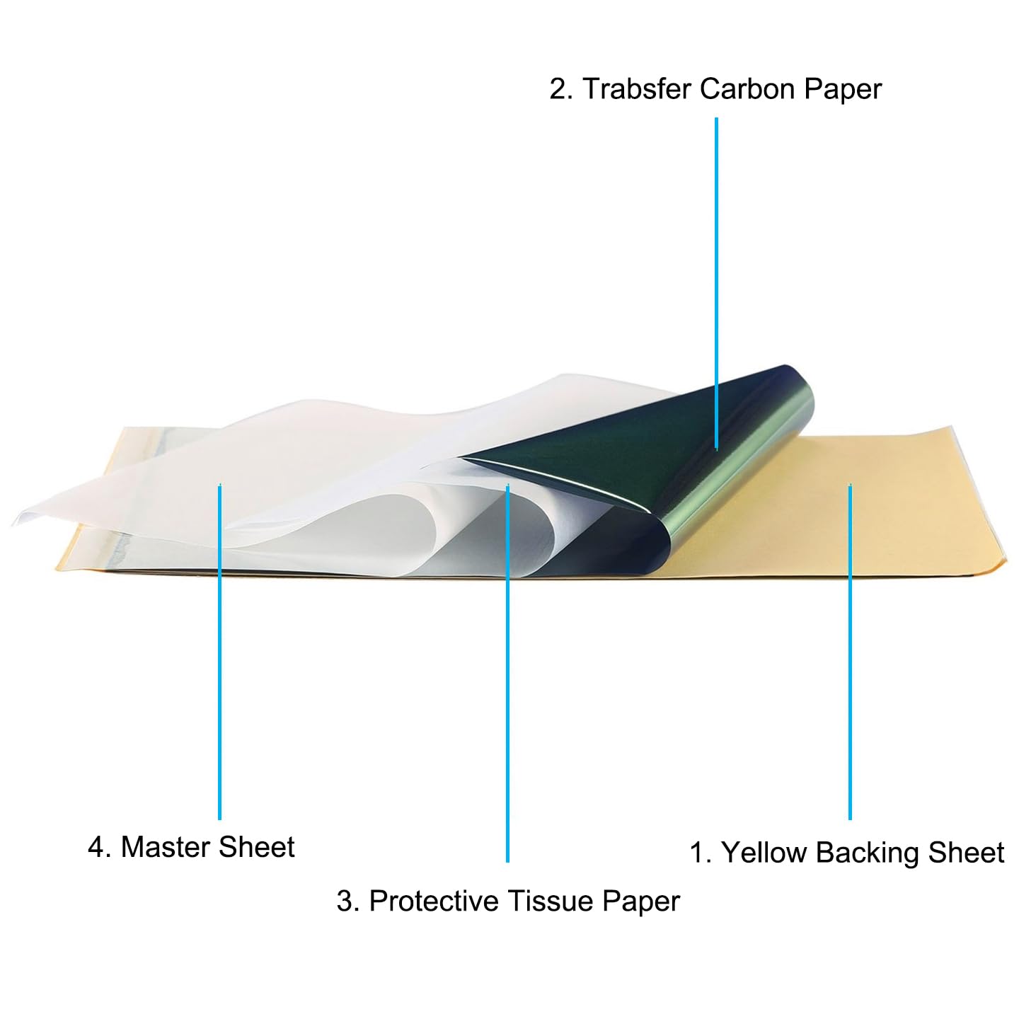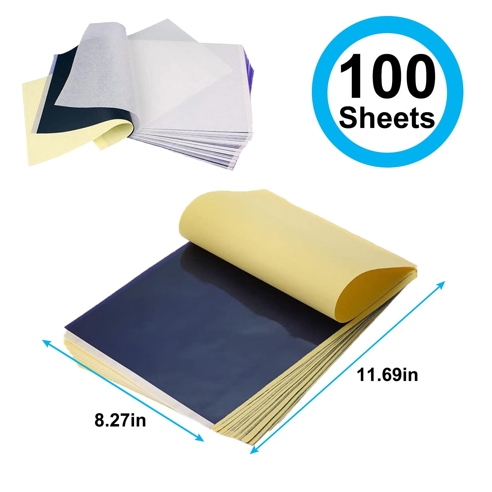 Standard size: Tattoo Transfer Paper is standard A4 paper size, each measures 8.27 in X 11.69 in. There are 4 levels in total. The thickness of the paper is very light and smooth to the touch.