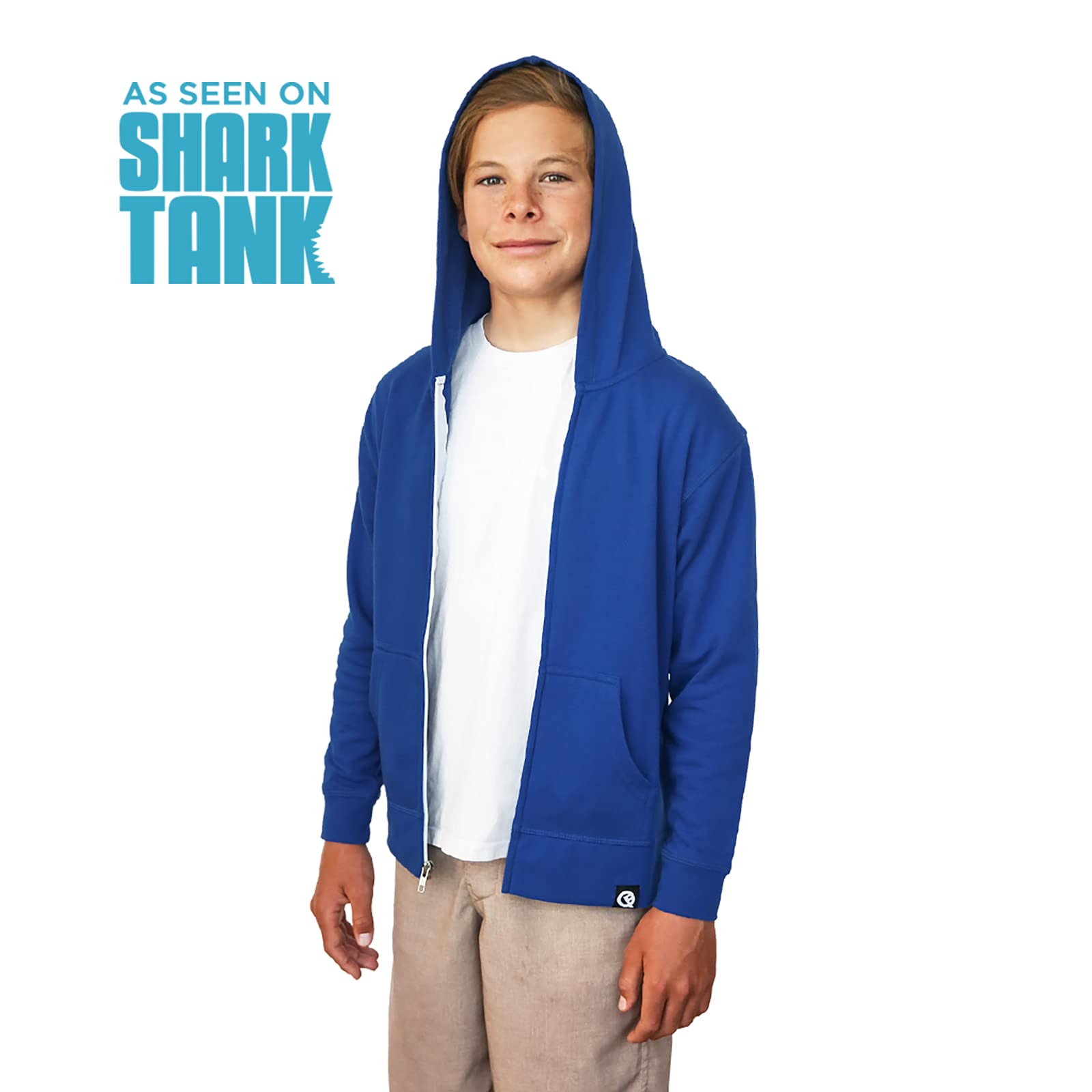 TIME MAGAZINE "BEST INVENTIONS OF 2019" - As Seen on Shark Tank! From the playground to the park, kids lose their hoodies when they take them off and don't know what to do with them. Using our patented Quikflip conversion technology, every lightweight kids' Hero Hoodie transforms into a functional backpack in a matter of seconds, so there is always an easy (and cool) way to carry it, regardless of the weather! Watch the video demo next to the product pics.