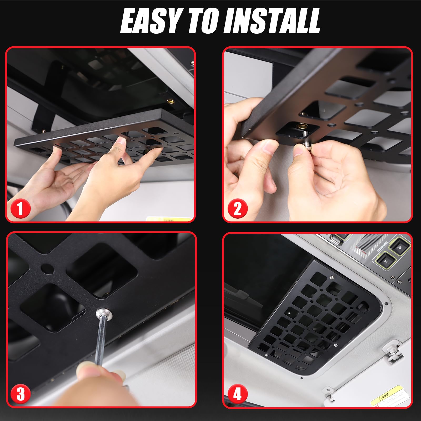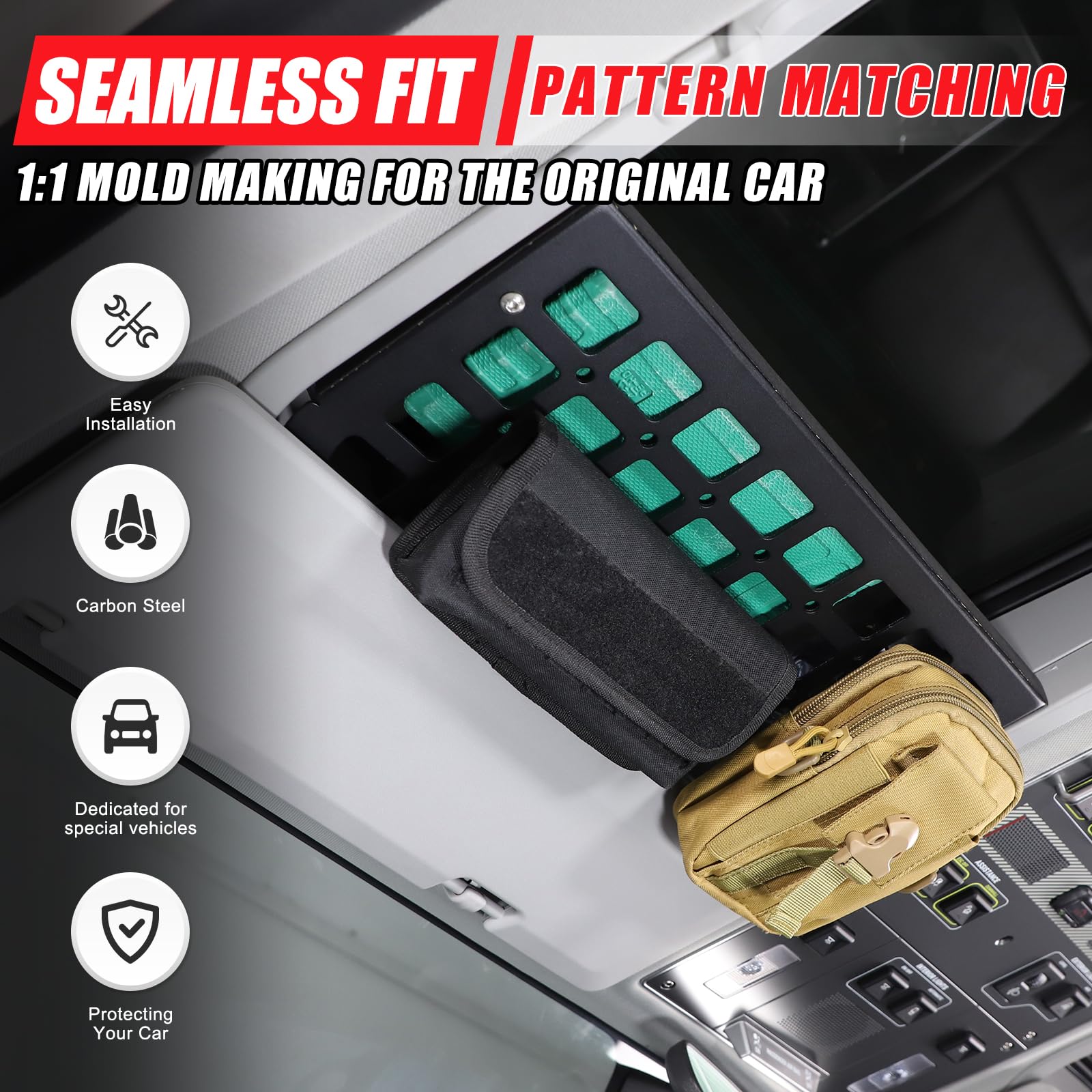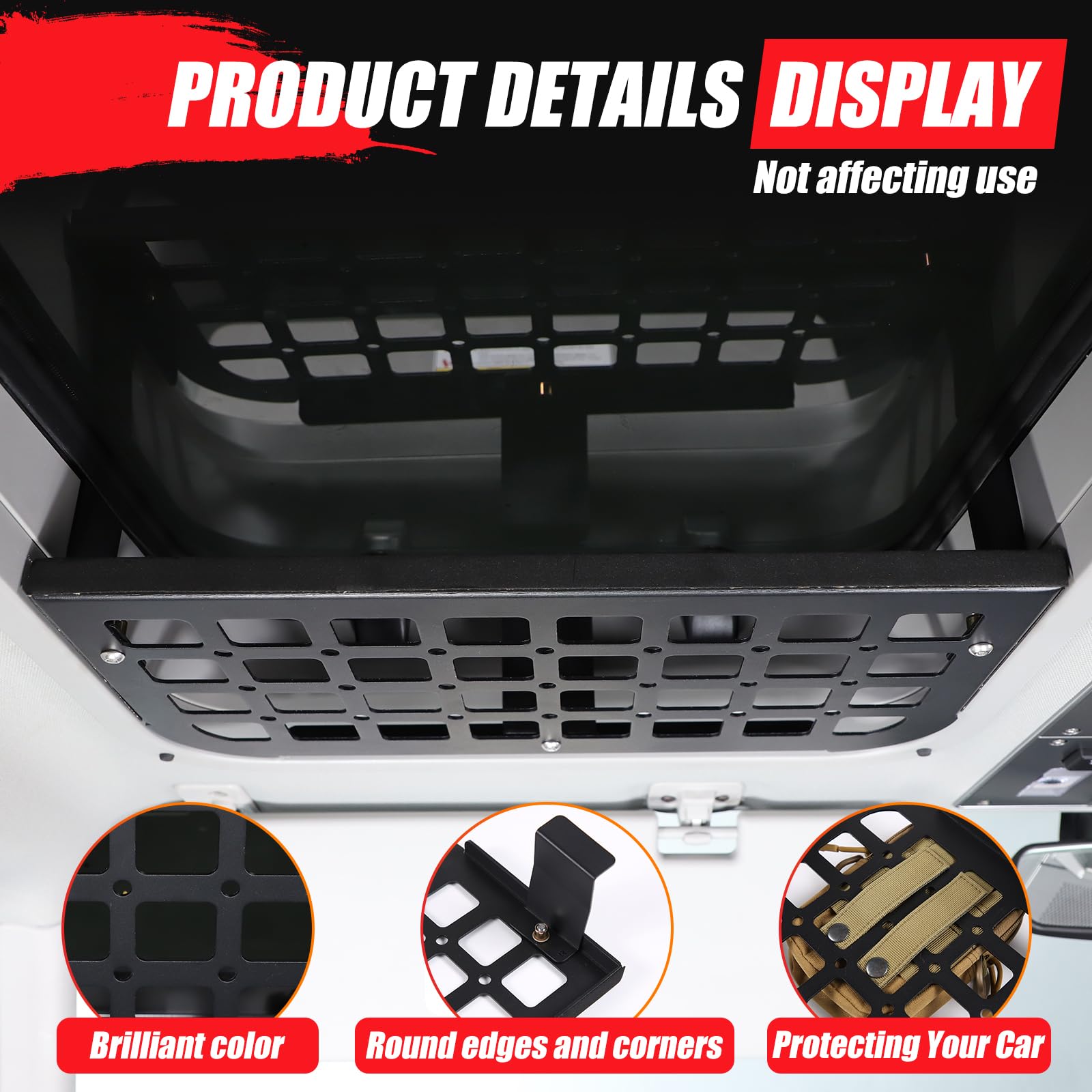 HIGH QUALITY: The sunroof organizer is made of carbon steel and aluminum alloy, the surface is specially treated to withstand great gravity, very strong, and the organizer prevents fading, bending, and rusting no matter what the driving or weather conditions are.