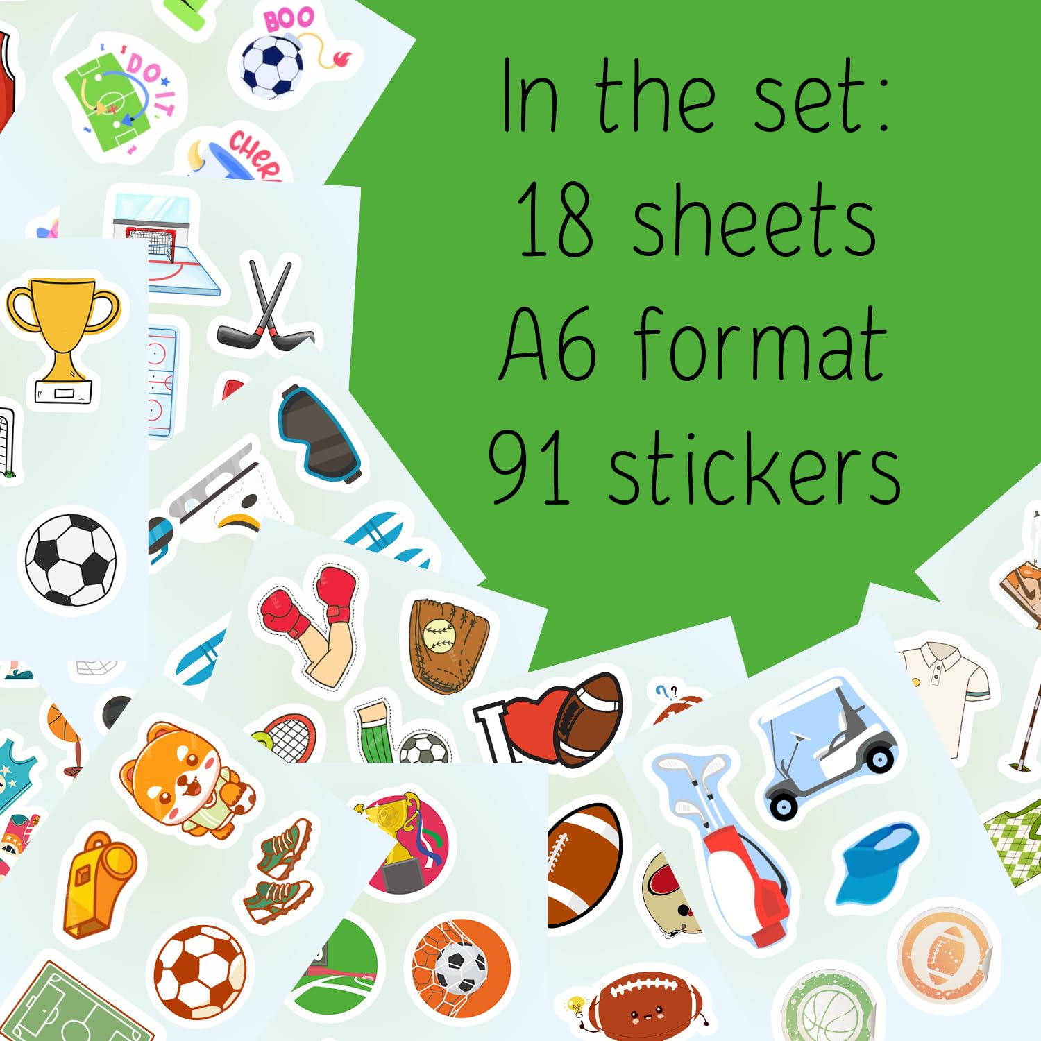 STICKER SHEETS - Sports sticker pack contains several sheets. Sticker sheets are less likely to get damaged or bent compared to loose, cut-out stickers.