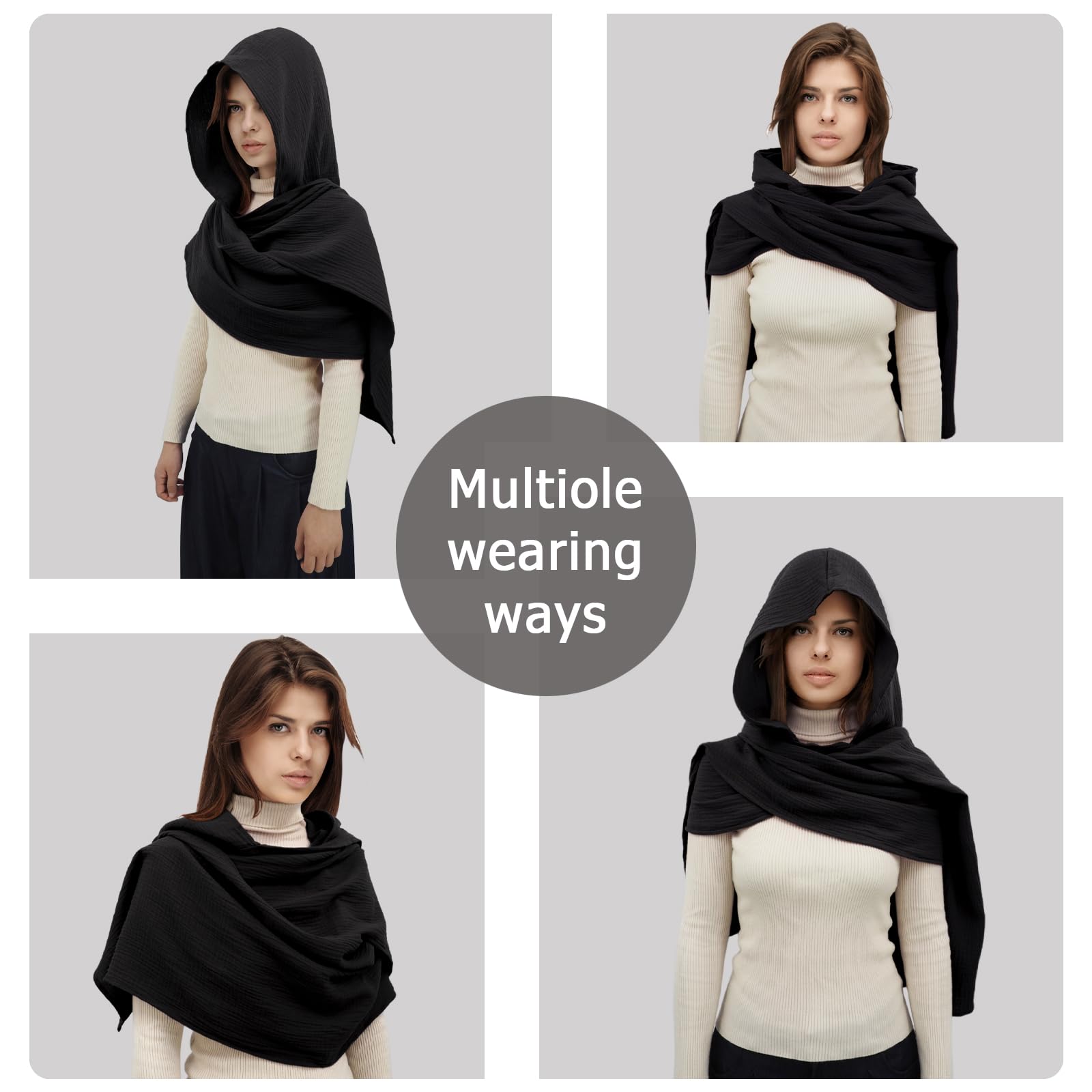 Essential Wardrobe Staple: Discover the ultimate in versatility with our hooded scarf, designed to be an indispensable addition to your seasonal wardrobe. Perfect for the crisp autumn air, chilly winter winds, and the early spring chill, this stylish accessory serves as a head covering, scarf, or wrap, ensuring warmth while elevating your outfit coordination.