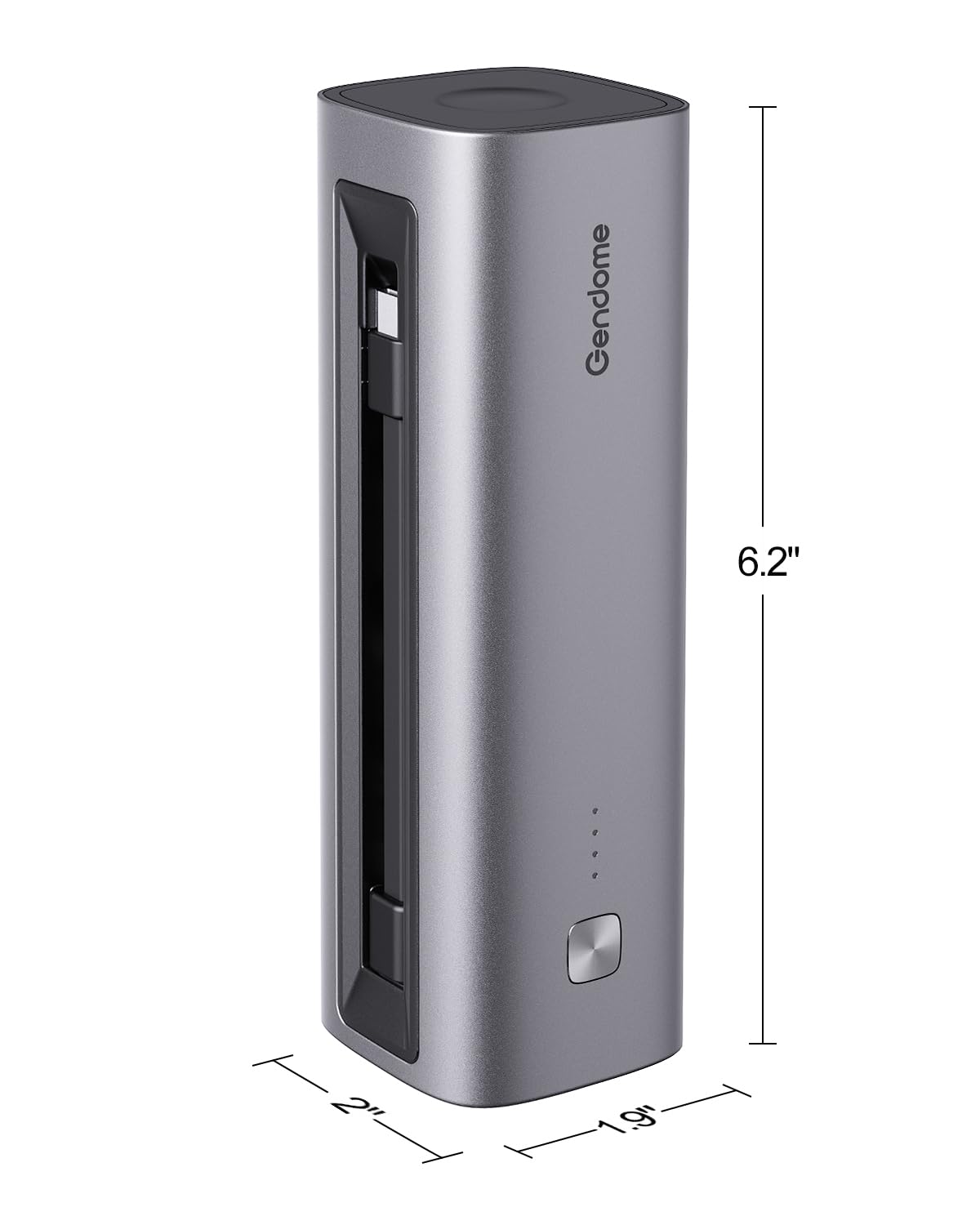 Universal Compatibility: Equipped with a USB-C input/output port, extra USB-C output port, a USB-A port, and a dedicated wireless charging pad for Apple Watch. A one stop solution for your charging needs. Tip: Fully charge GENDOME Micro30 power bank before first use.