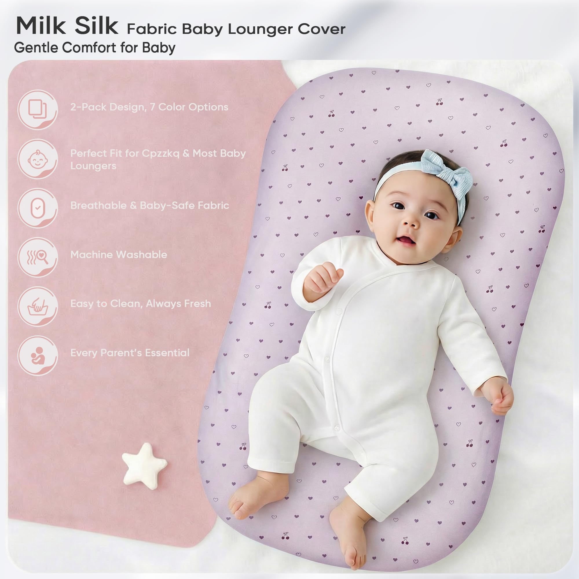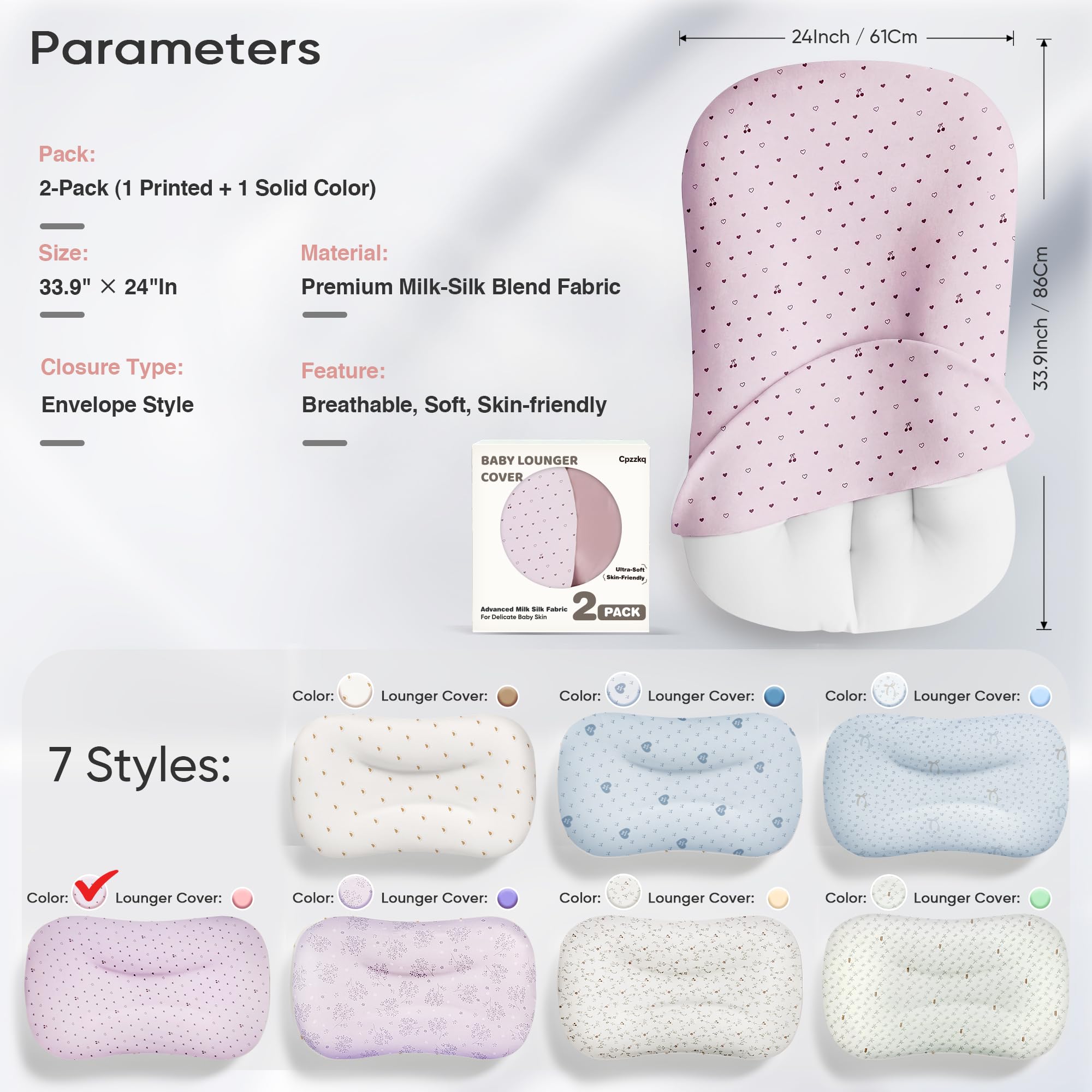 Give your little one the comfort they deserve with our 2-Pack Baby Lounger Covers, perfectly sized for the Cpzzkq baby lounger and most standard loungers (33.9" x 24"). Each set includes one printed and one solid-color cover — an easy way to refresh your nursery and switch styles in seconds. Crafted from silky milk-silk blended fabric, these infant lounger covers feel soft and smooth against delicate skin. The breathable, quick-dry material helps keep your baby fresh and comfy during tummy time, play, or cuddle sessions in the nursery. Designed with gentle, hypoallergenic materials and an envelope-style closure for a snug fit, each lounger cover is machine washable, shrink-resistant, and odor-free — making cleanup effortless for busy parents while keeping your baby’s space fresh. A perfect balance of beauty and function, our baby lounger covers bring comfort, safety, and style into your nursery — because your baby deserves the softest touch every single day.