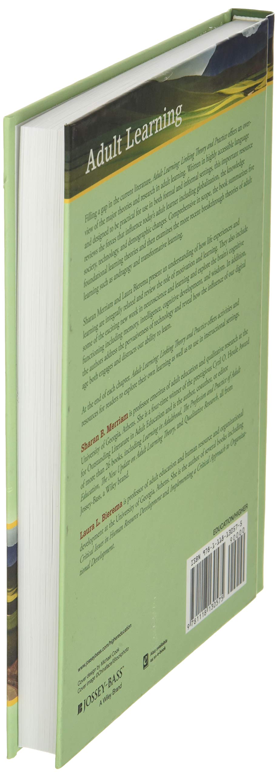 Solidly grounded in theory and research, but concise and practice-oriented, Adult Learning: Linking Theory and Practice is perfect for master’s-level students and practitioners alike. Sharan Merriam and Laura Bierema have infused each chapter with practical applications for instruction which will help readers personally relate to the material. The contents covers: Adult Learning in Today’s World Traditional Learning Theories Andragogy Self-Directed Learning Transformative Learning Experience and Learning Body and Spirit in Learning Motivation and Learning The Brain and Cognitive Functioning Adult Learning in the Digital Age Critical Thinking and Critical Perspectives Culture and Context Discussion questions and activities for reflection are included at the end of each chapter.