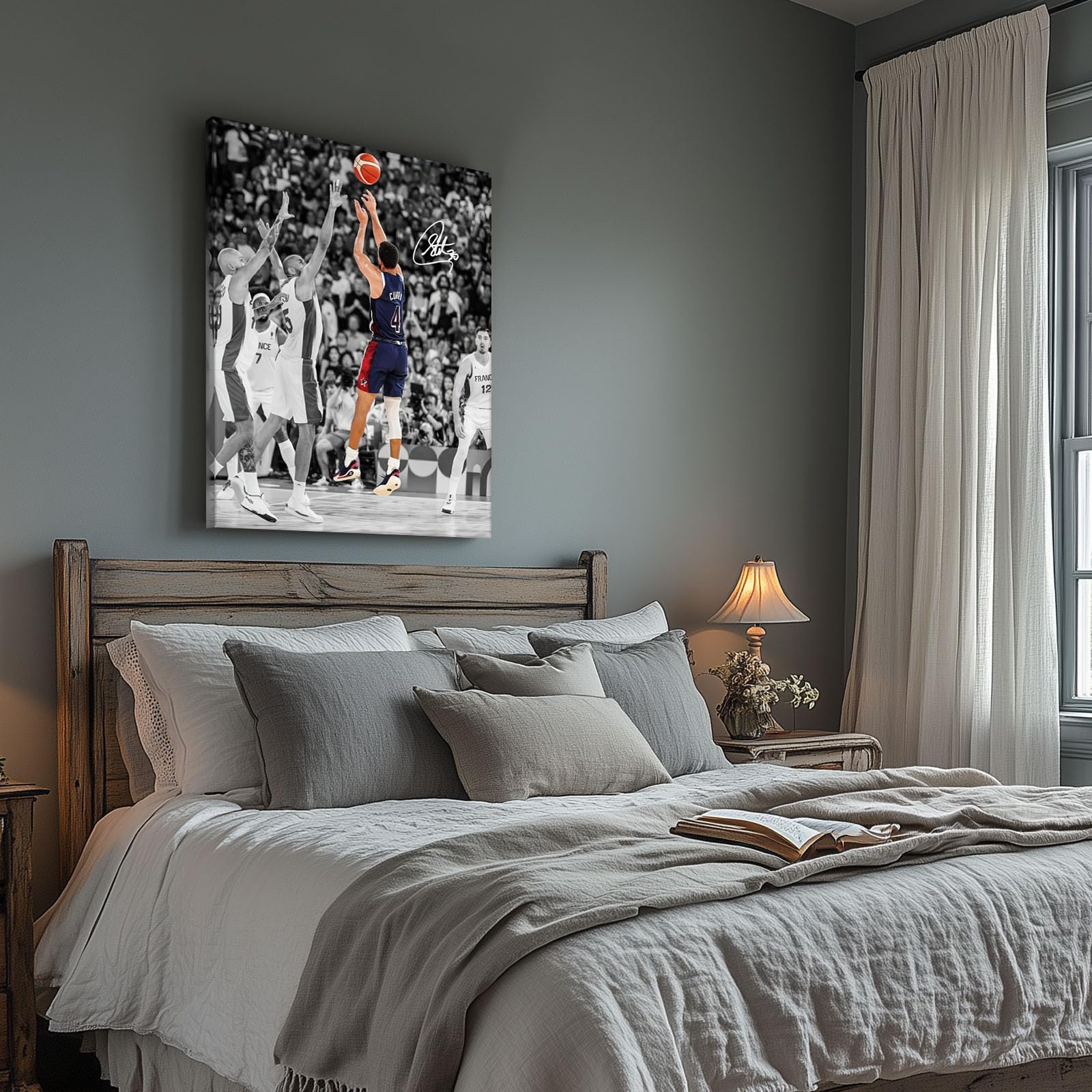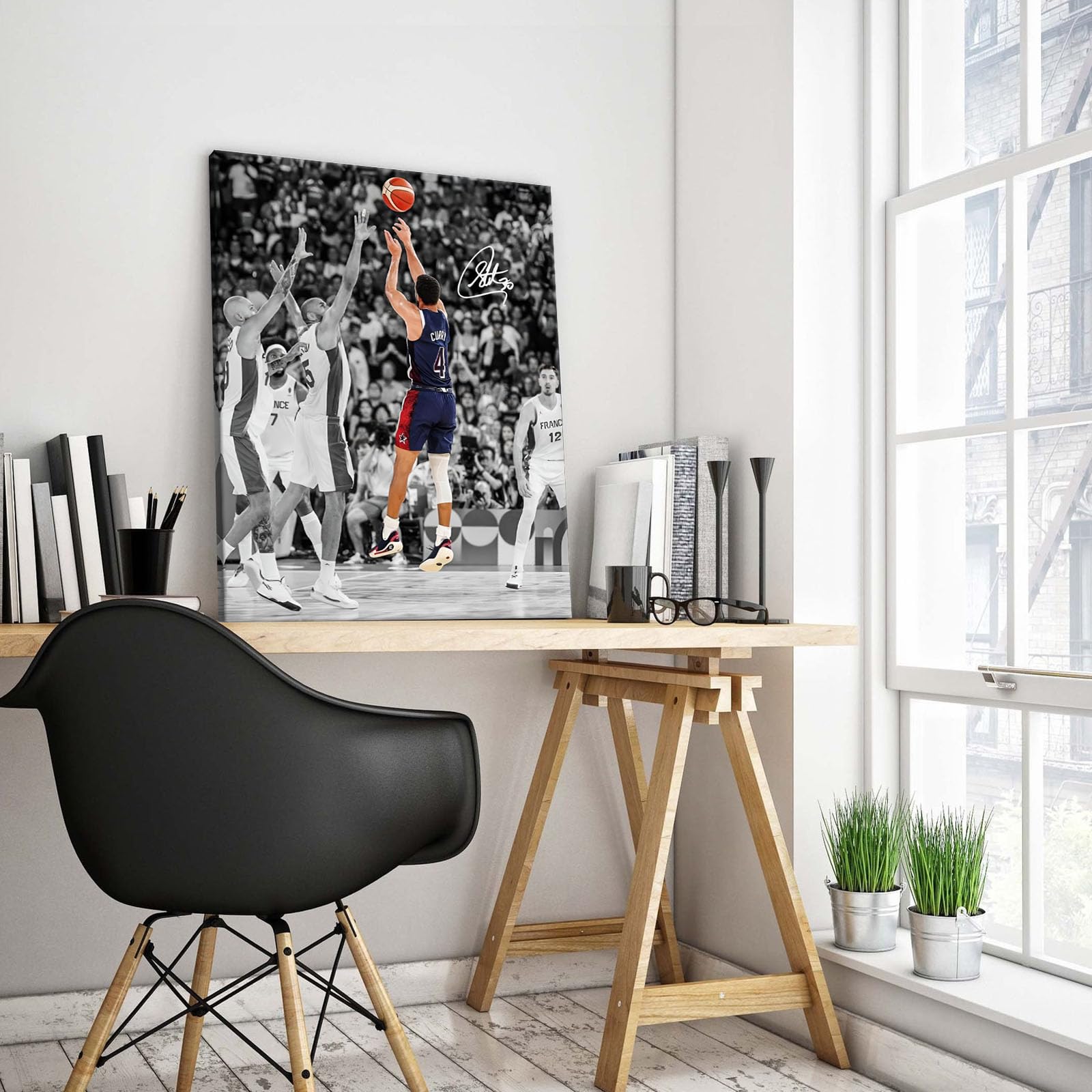 Clean Print Detail on Woven Canvas – Printed with color inks on woven canvas for crisp lines, strong contrast, and solid color areas—great for sports-themed room decor and basketball wall art displays.