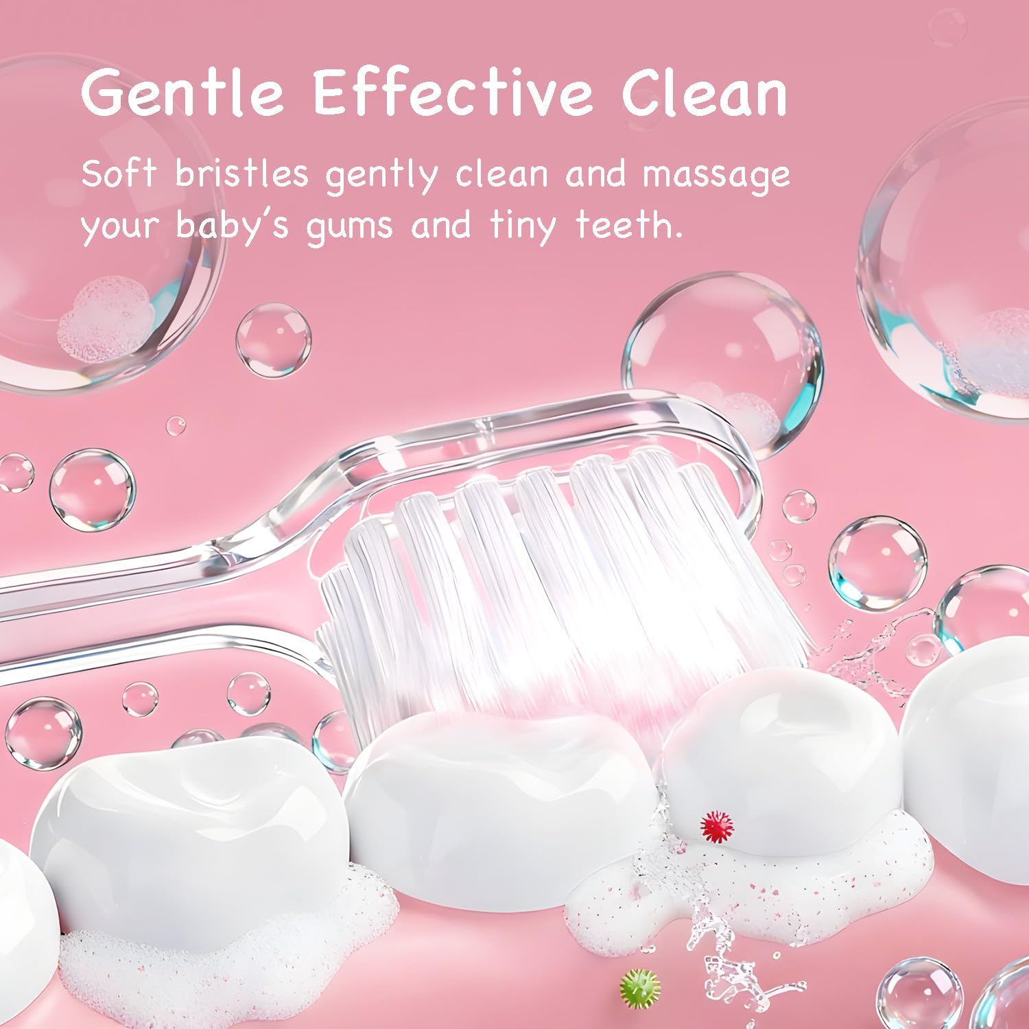 【Teaches Good Brushing Habits】:Our baby toothbrush 12 months and up features a 2-minute timer and gentle 30-second pulse reminders to help your little one brush each section of their mouth evenly — building healthy brushing habits from the start.