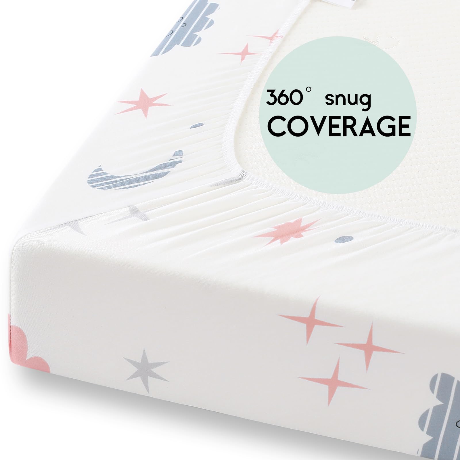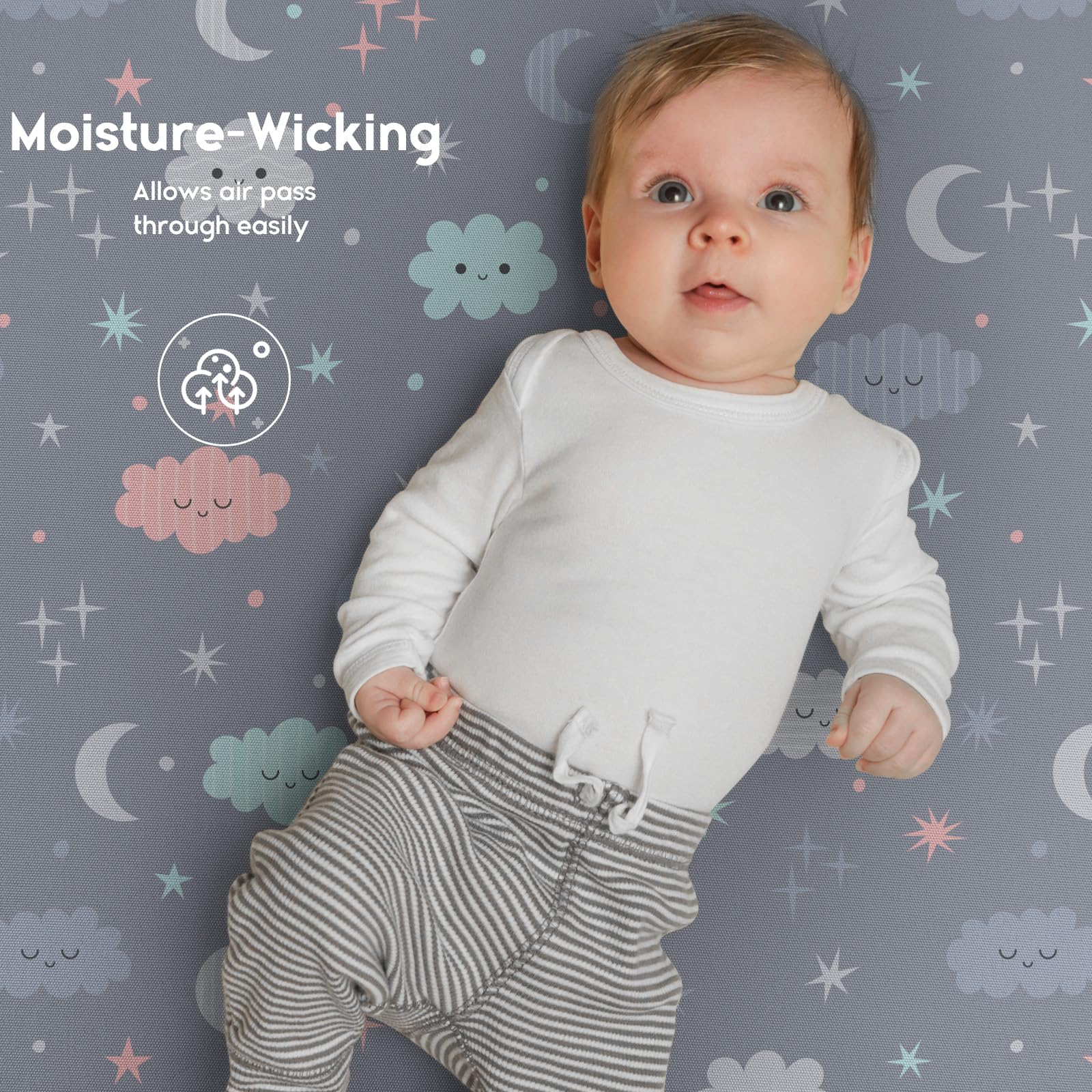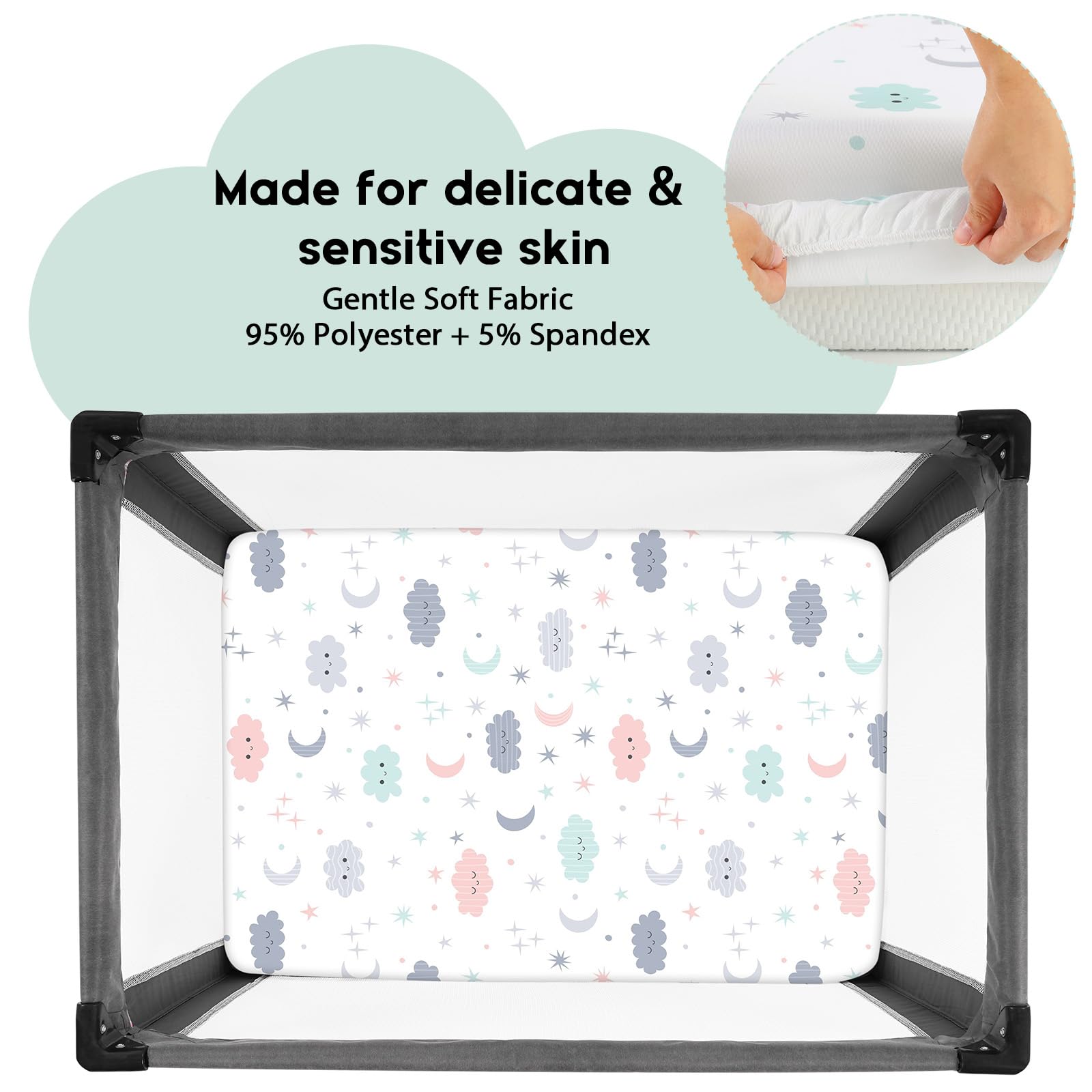 COZY AND BREATHABLE: Made from 95% microfiber & 5% spandex, our pack and play sheets are gentle and safe to touch, does not irritate baby's delicate skin. The breathable fabric also allows air to pass through easily and brings your baby a peaceful dream.