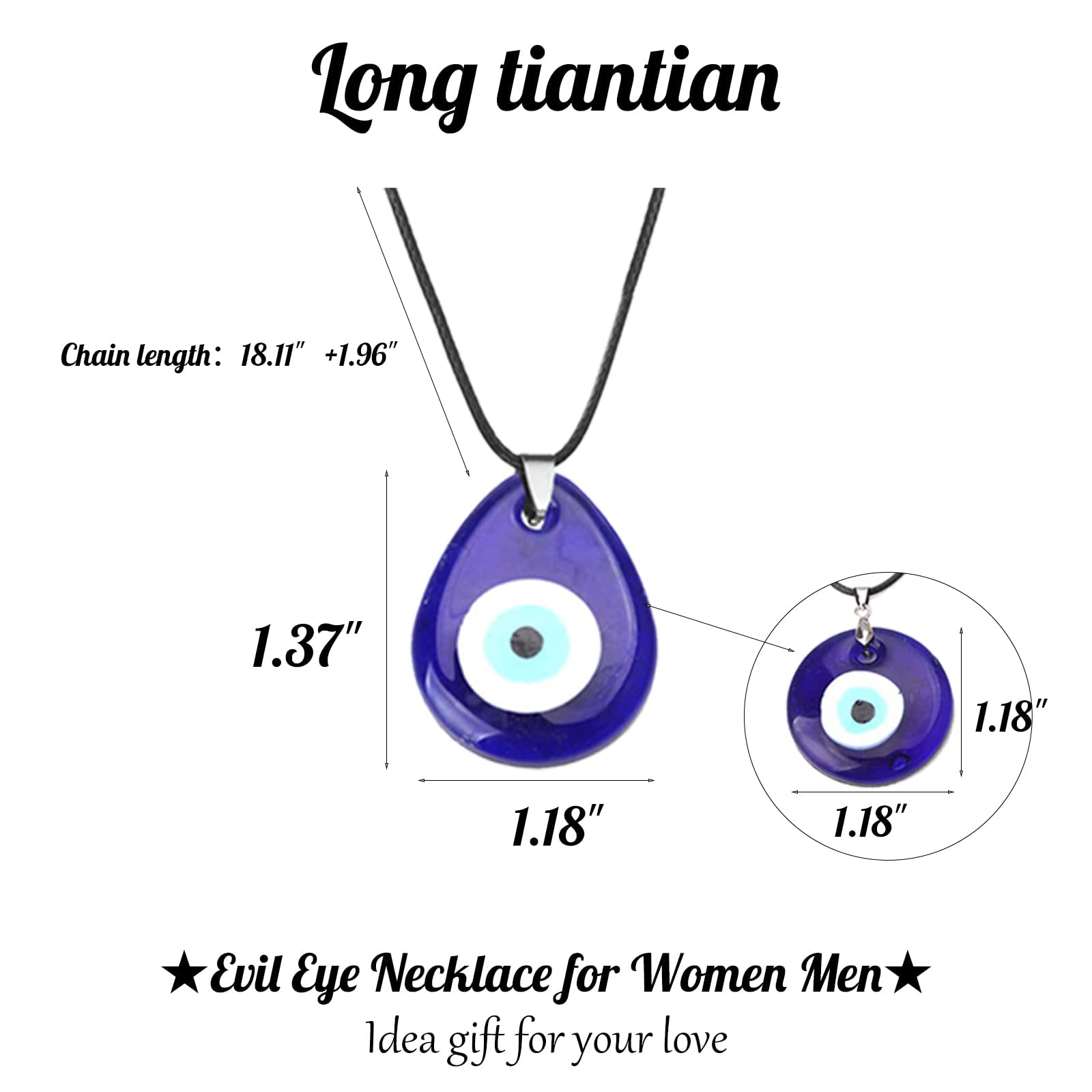 BLUE YE NECKLACE FOR WOMEN MEN:Our Evil eye necklace is suit for male and female. Chain Length is 17.8in + 2in,Pendent Size is 1.20in ,This evil eye pendent necklace will make you stay away from bad things,it it a luck and protect feather necklace for you!