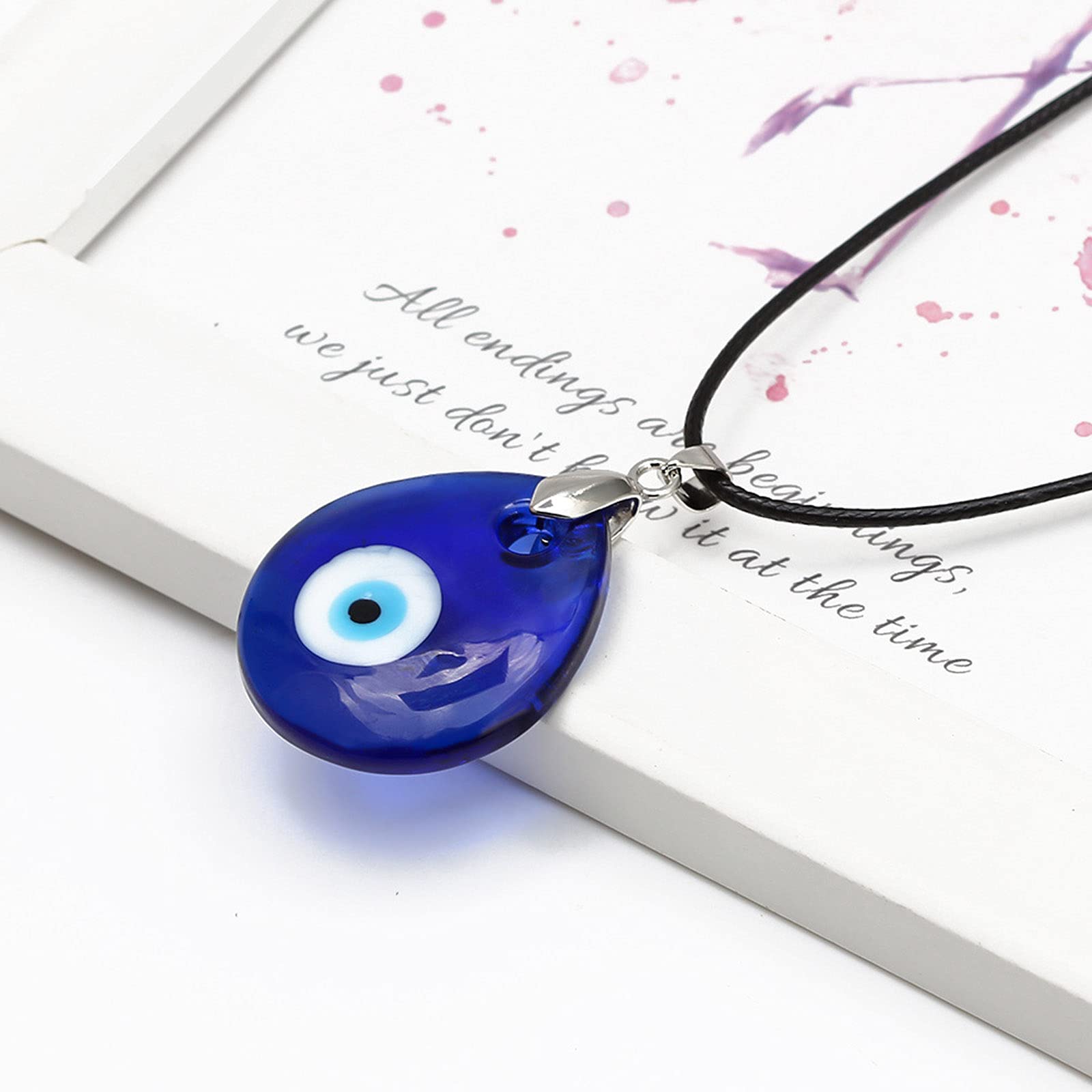 EVIL EYE NECKLACE :the evil eye necklace come with with a beautifully designed wish card into a black dainty present bag,it will protect your lucky necklace,when you get your evil eye necklace.