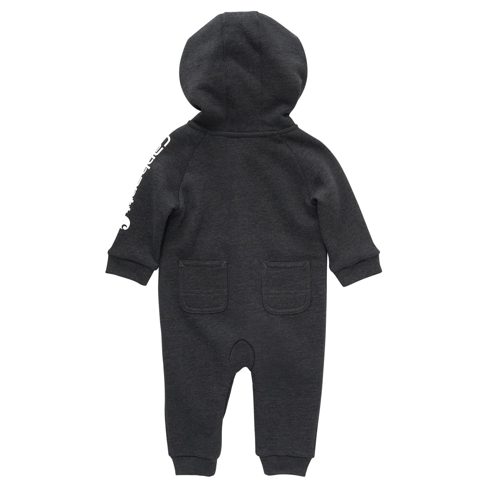 Description Keep your baby boy all bundled up and warm in this long-sleeve hooded fleece coverall from Carhartt. Made from soft yet durable fleece, it has an easy on/off zipper and cuffs that fit snugly around little wrists and ankles to keep chilly air from getting in.